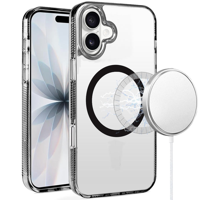 For iPhone 17 Case Magnetic Circle Grip Sides on Clear Hybrid + Tempered Glass