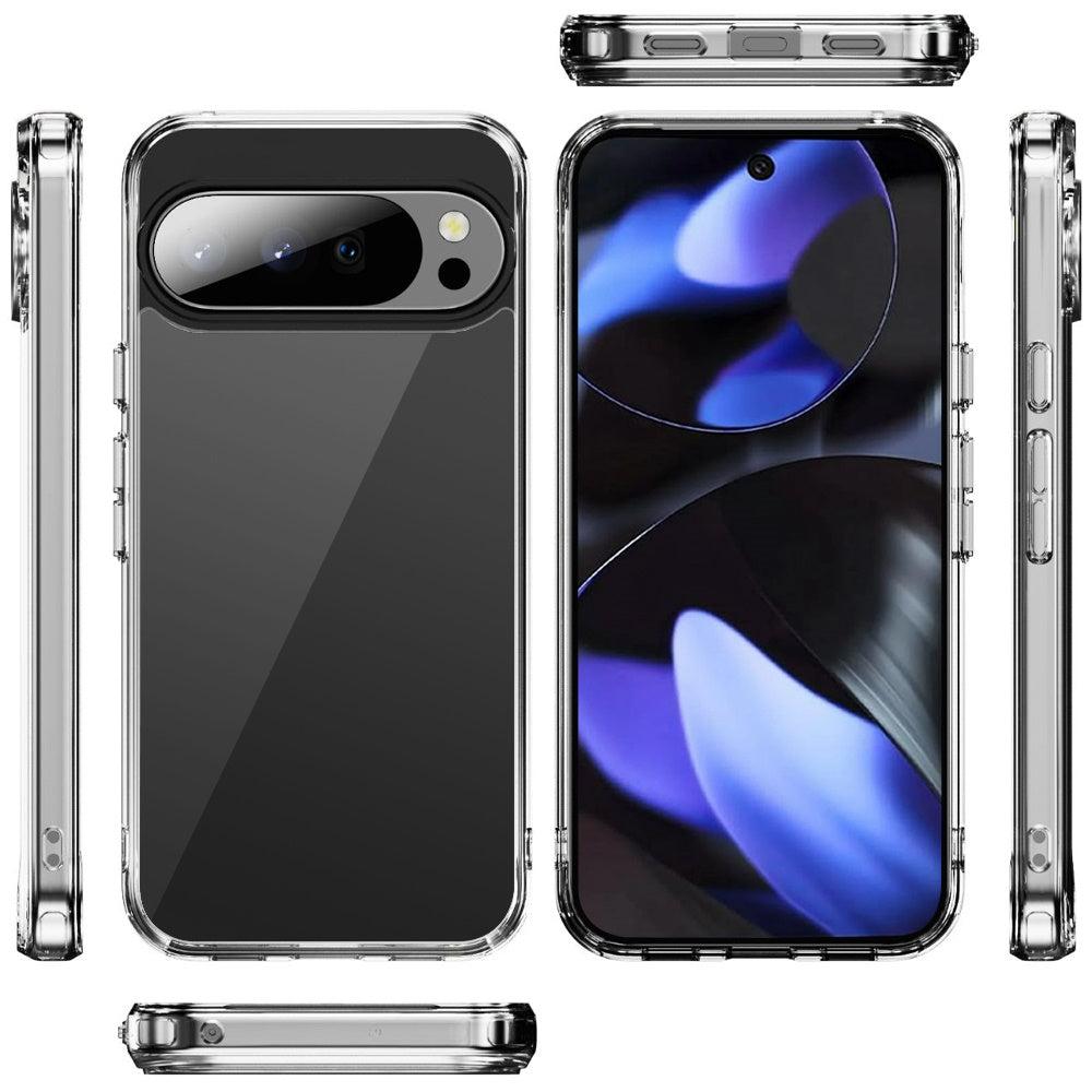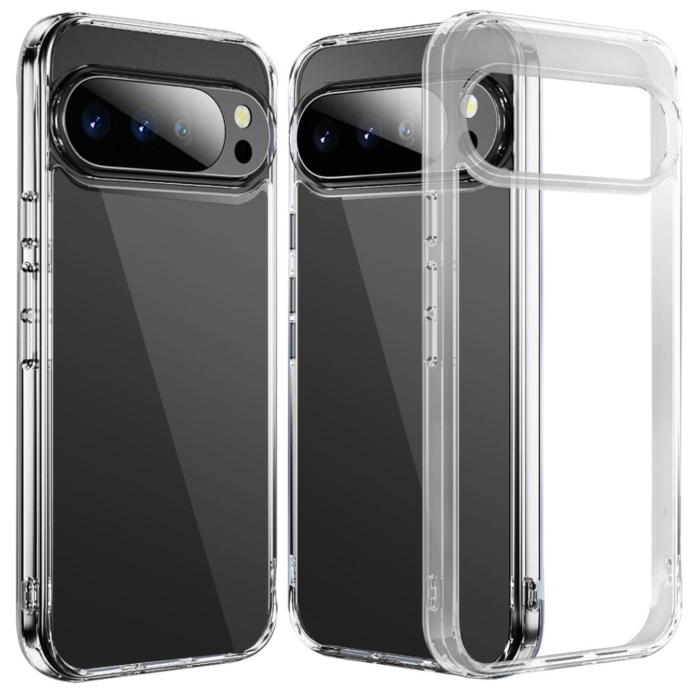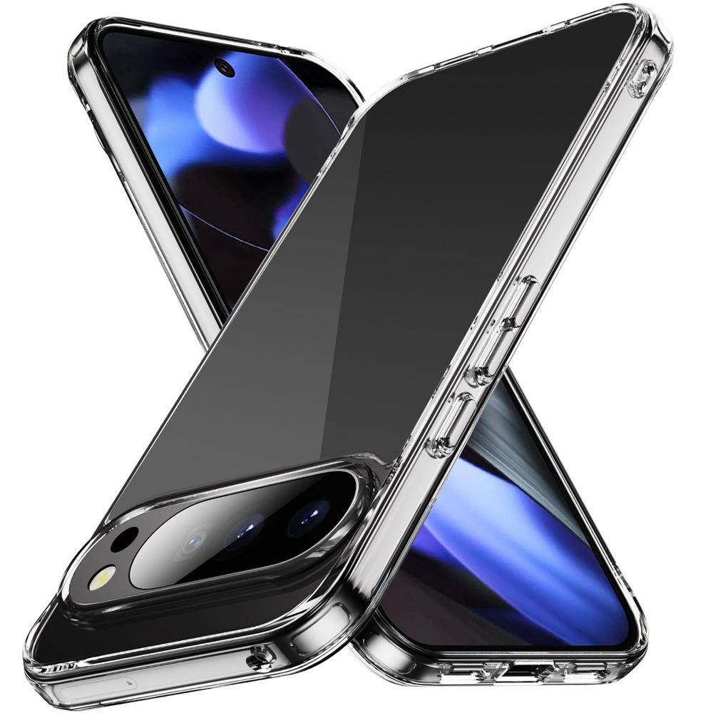 For Google Pixel 10/10 Pro Case Clear Cover w/ Chromed Buttons + Tempered Glass