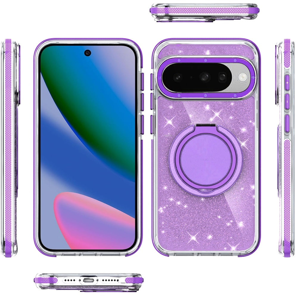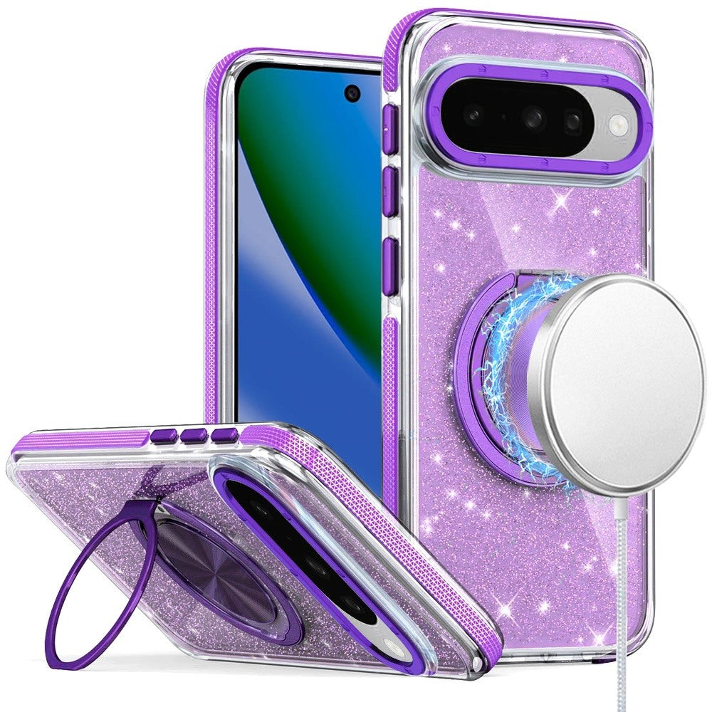 Magnetic Circle Doubles as a Stand with Full Glitter Back Phone Cover + Tempered Glass Screen Protector