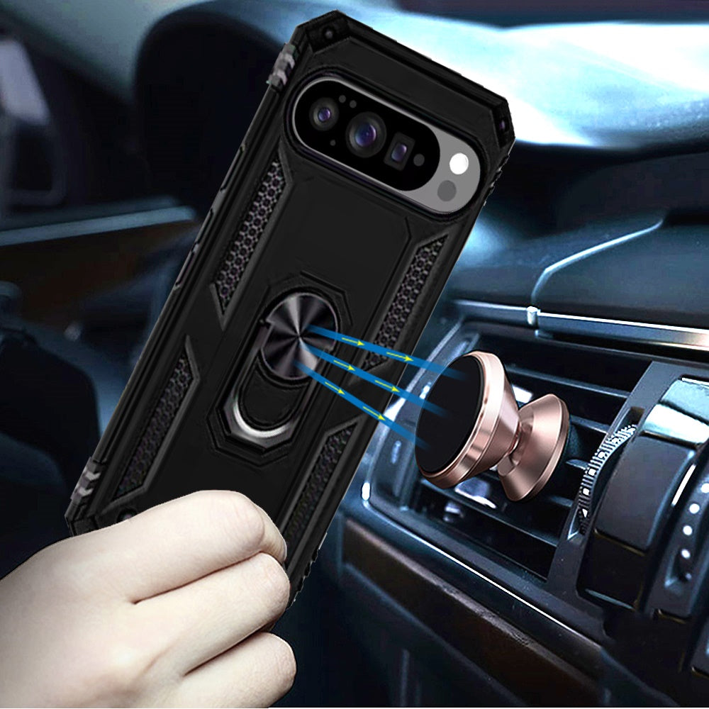 For Google Pixel 10/10 Pro Case Ring Holder Magnetic Kickstand + Tempered Glass