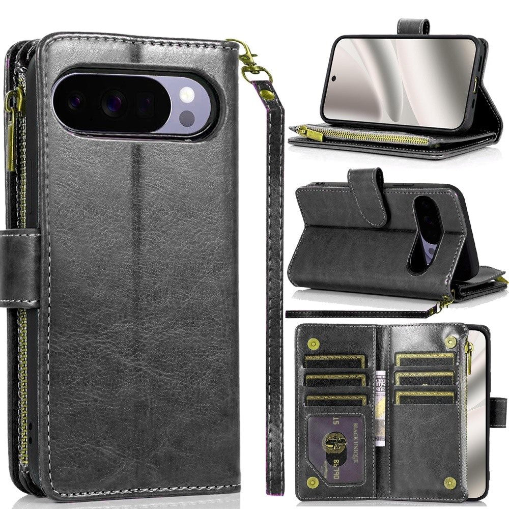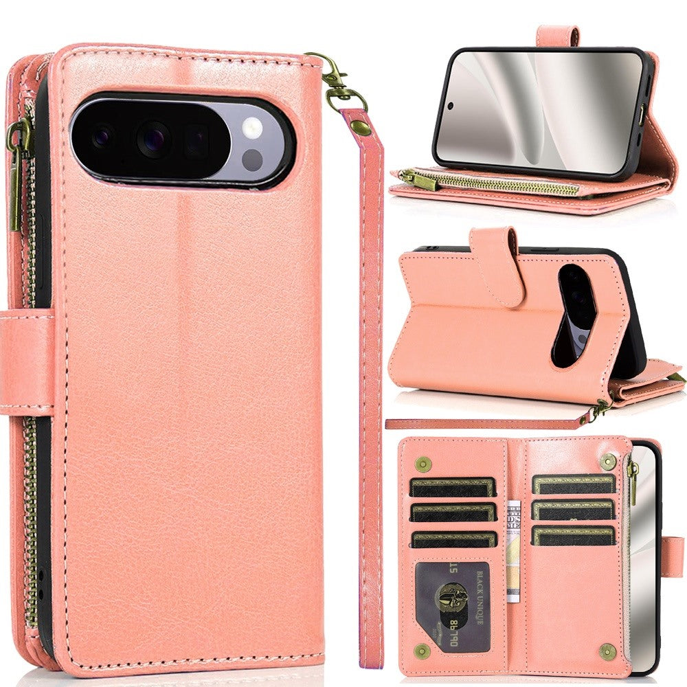 For Google Pixel 10 Pro XL Case Luxury Phone Wallet with Zipper + Tempered Glass