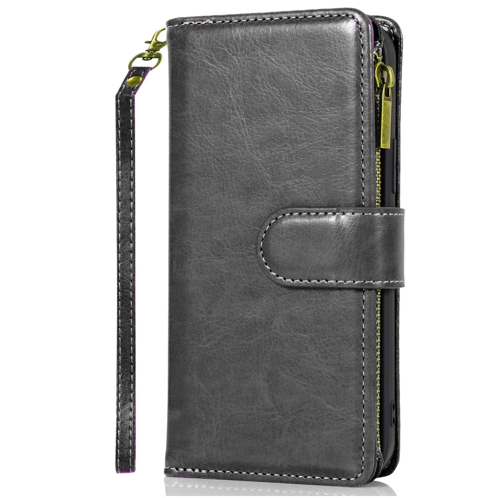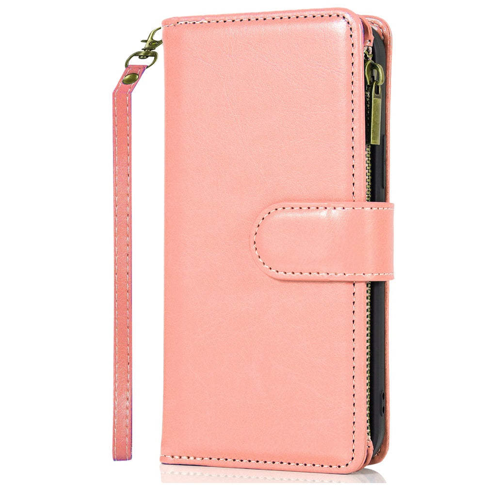 Luxury Phone Wallet Case Card ID Money Holder with Lanyard + Tempered Glass Screen Protector