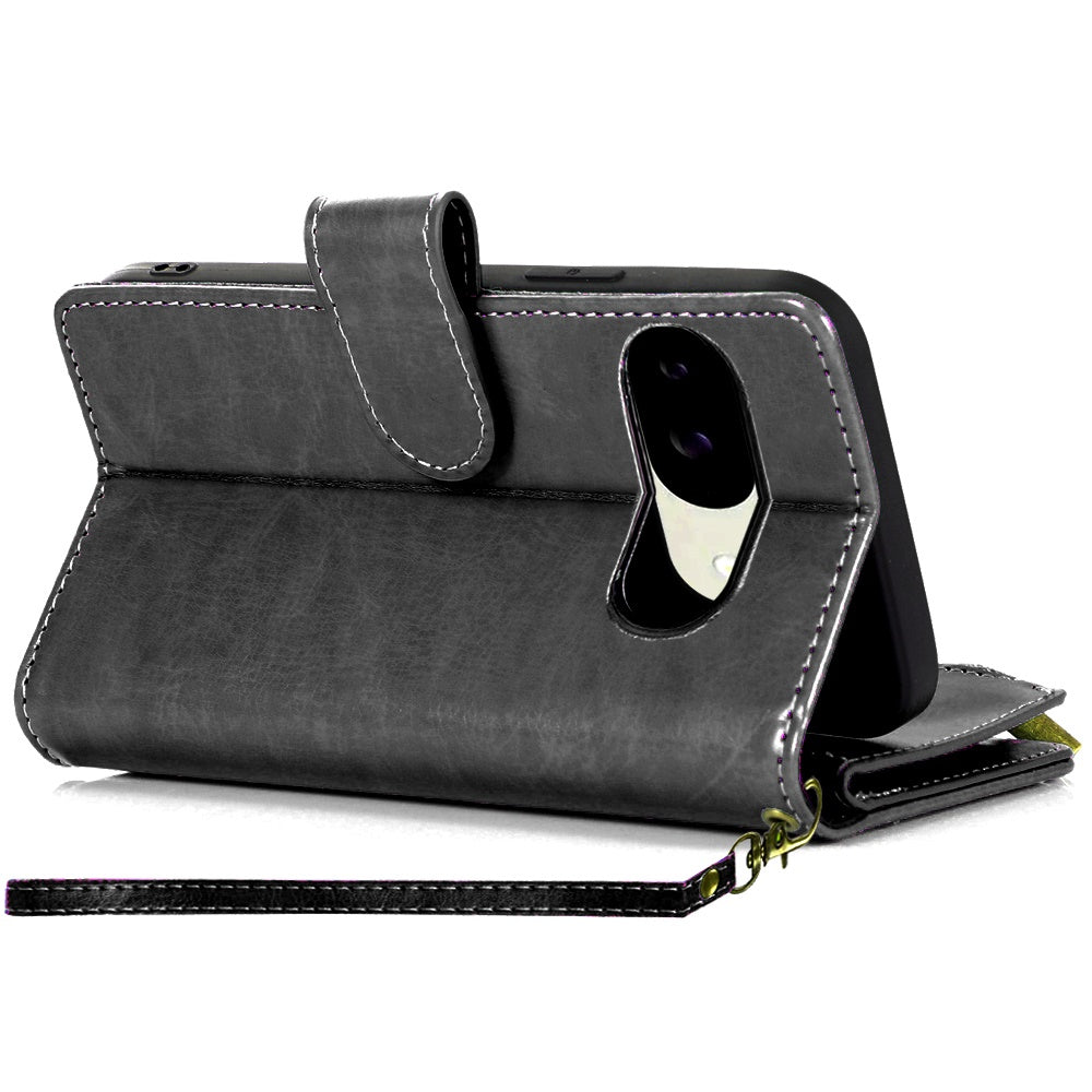 For Google Pixel 9a Case Luxury Phone Wallet Cover with Zipper + Tempered Glass