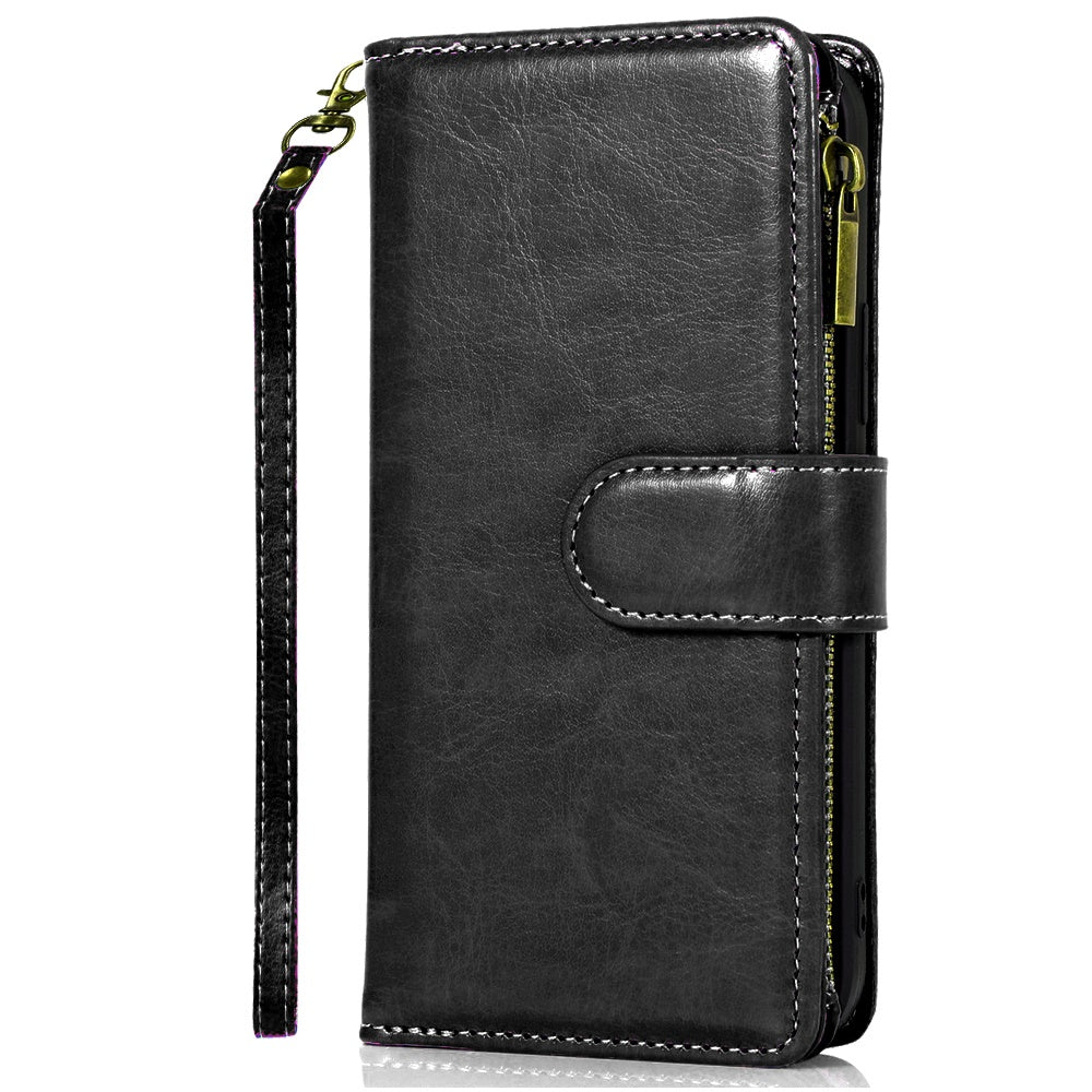 Luxury Phone Wallet Case Card ID Money Holder with Lanyard + Tempered Glass Screen Protector