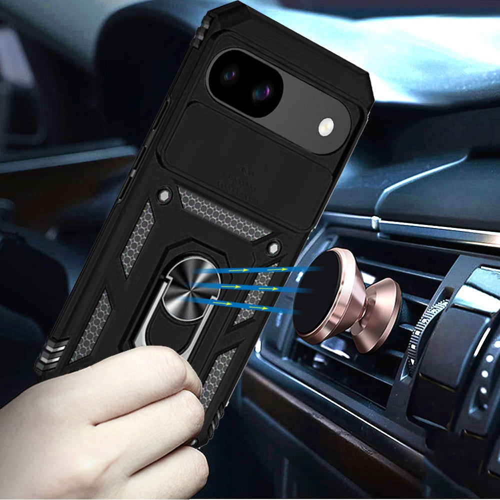 For Google Pixel 9a Case Shockproof RingStand Camera Lens Cover + Tempered Glass