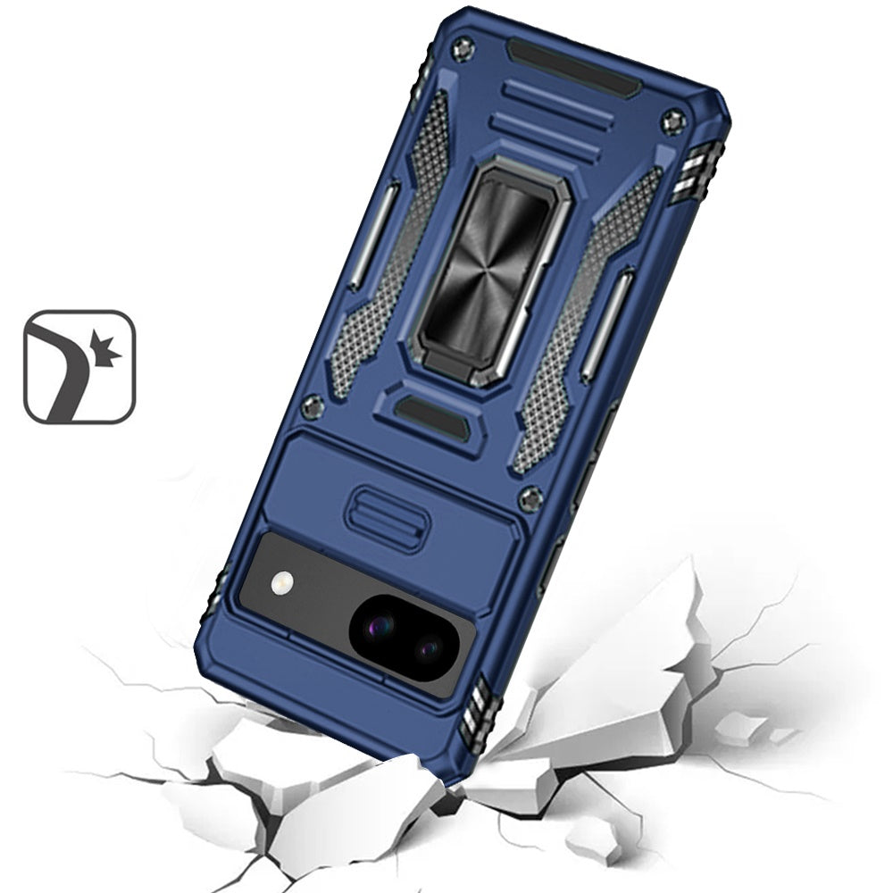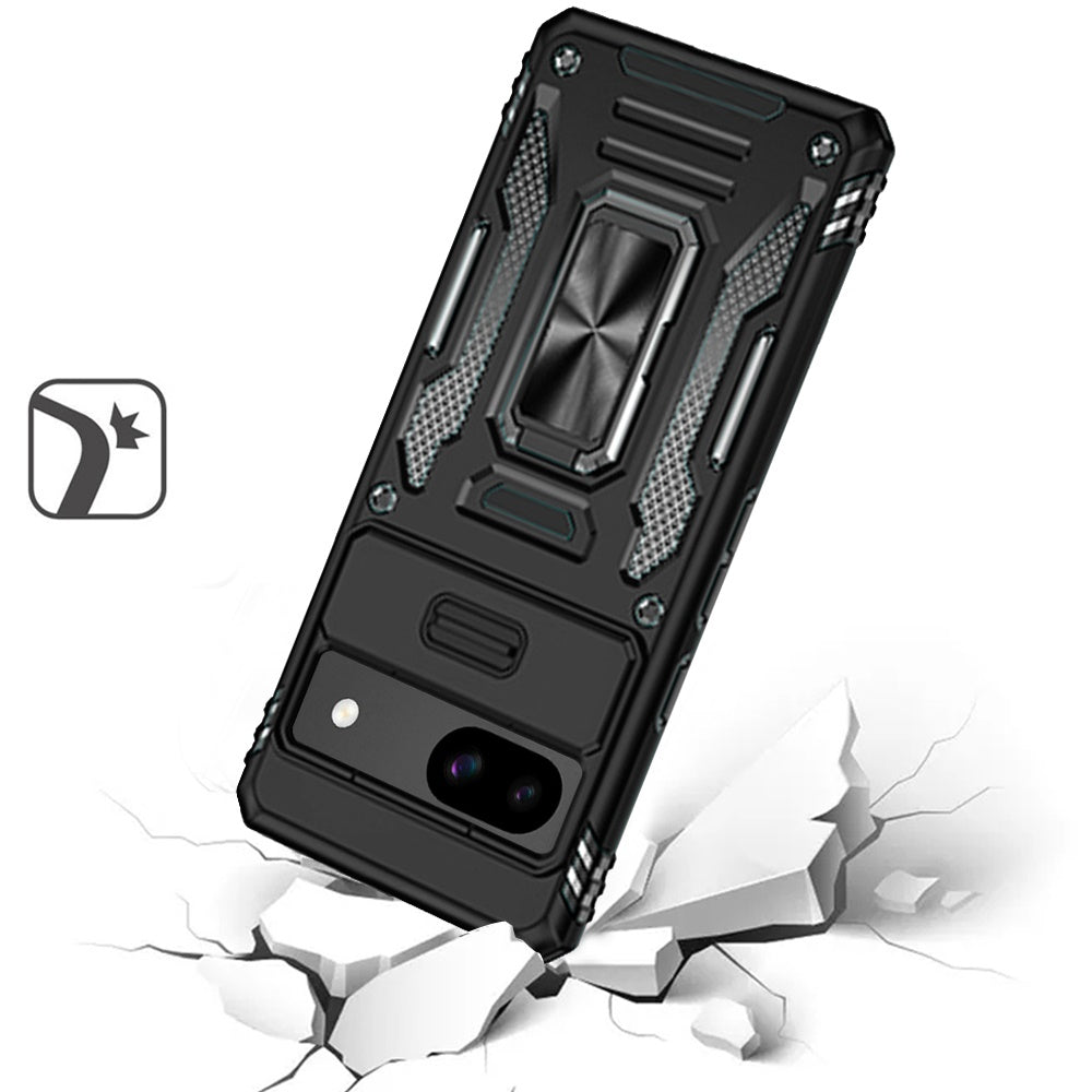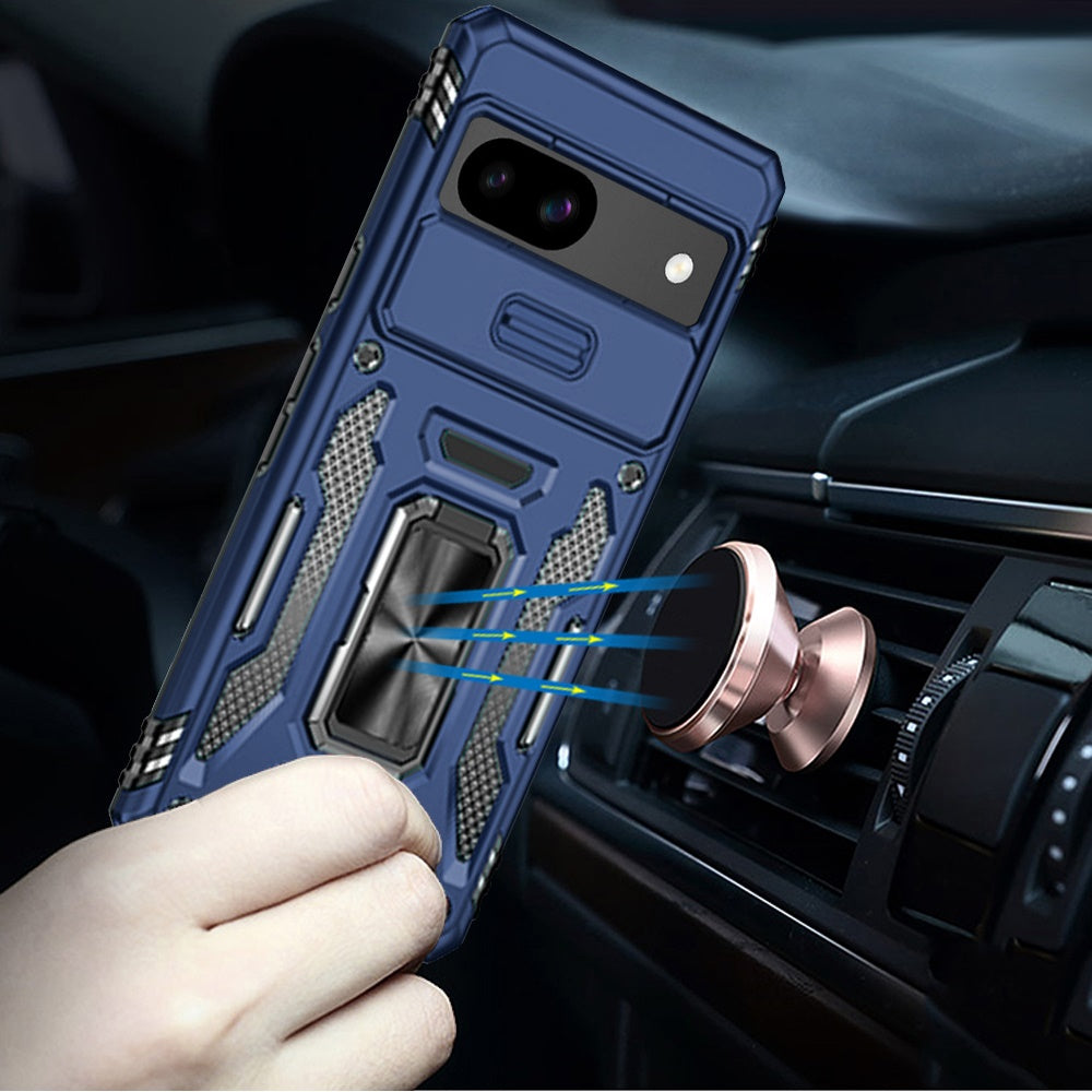 Sliding Lens Shockproof Cover w/ Magnetic Ring Stand + Tempered Glass Screen Protector