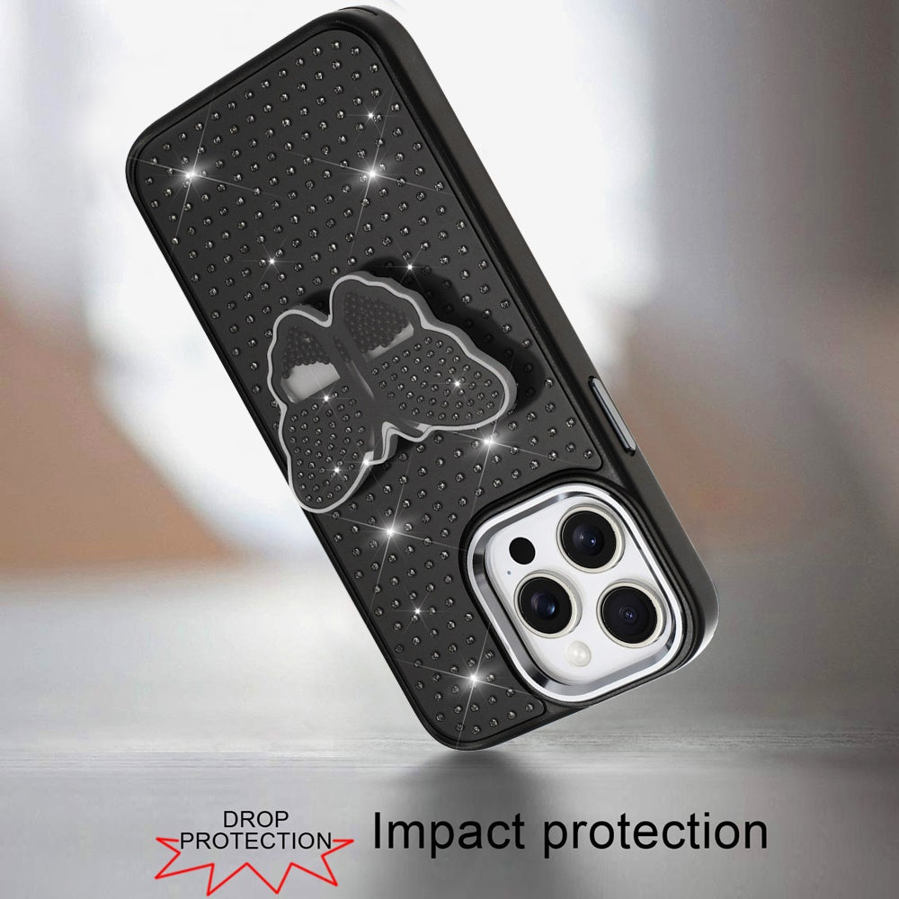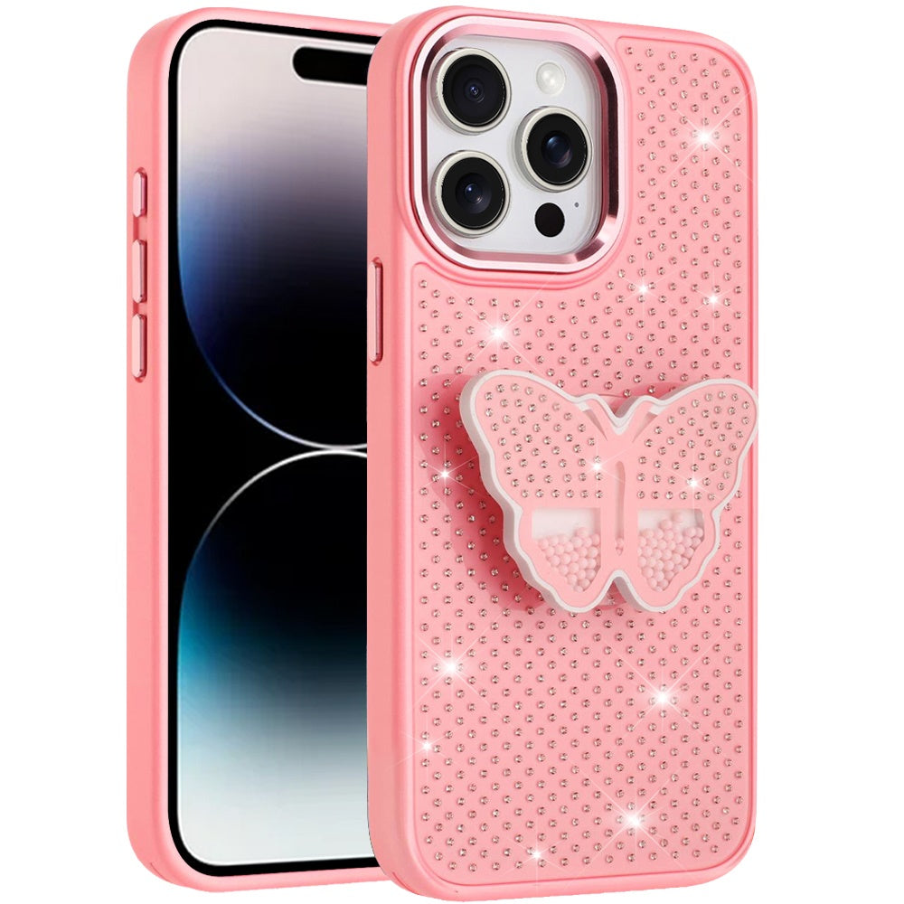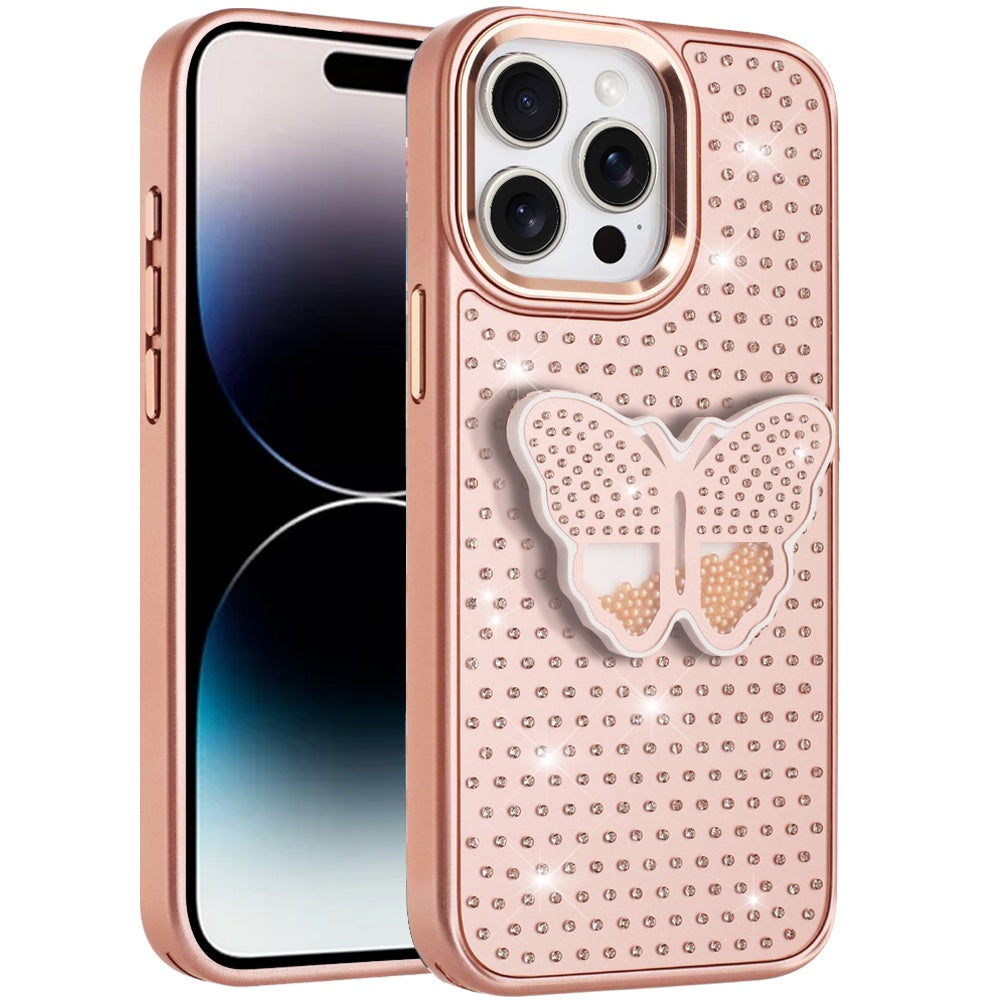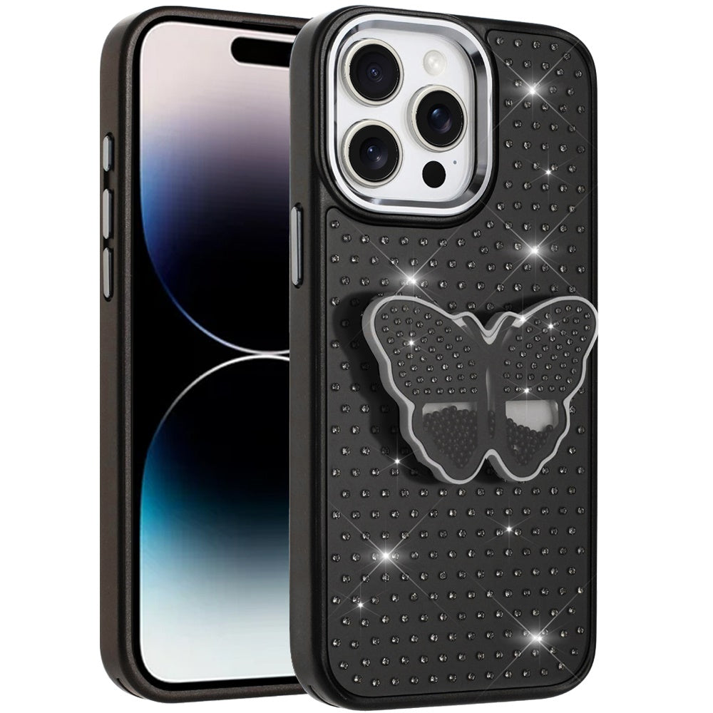 Butterfly Grip Stand with Faux Crystals Chrome Plated Buttons and Camera Trim Phone Cover