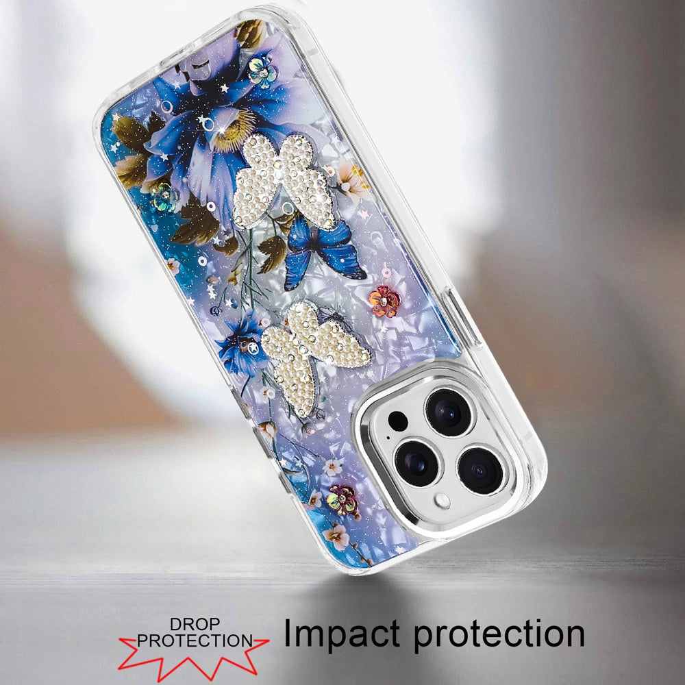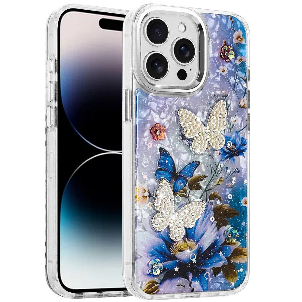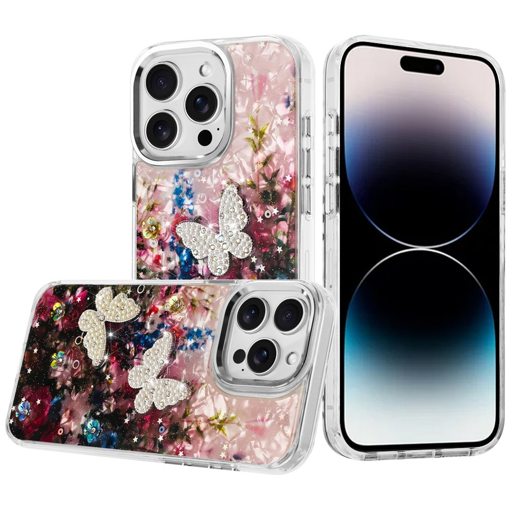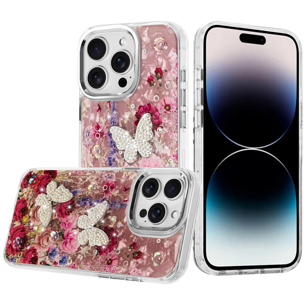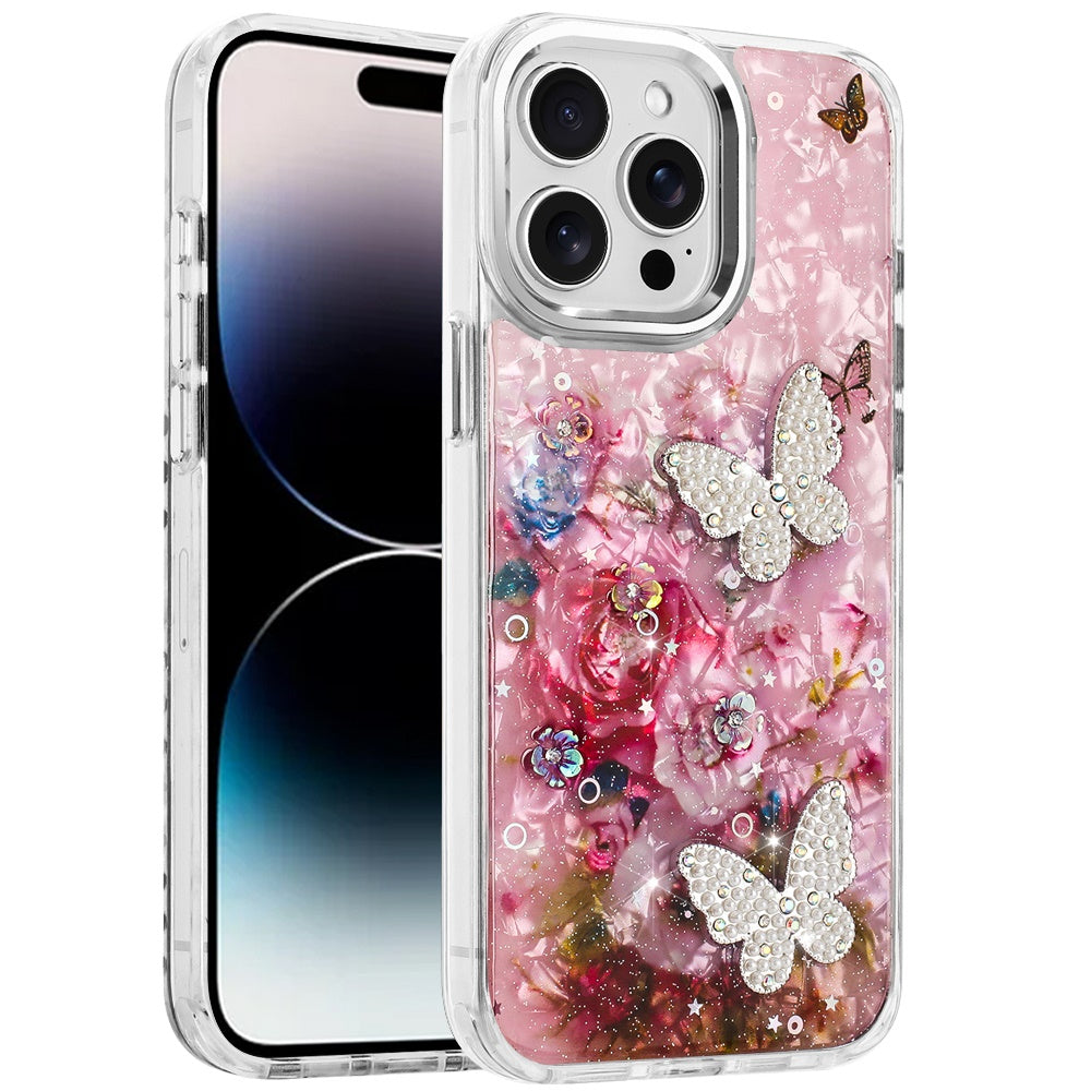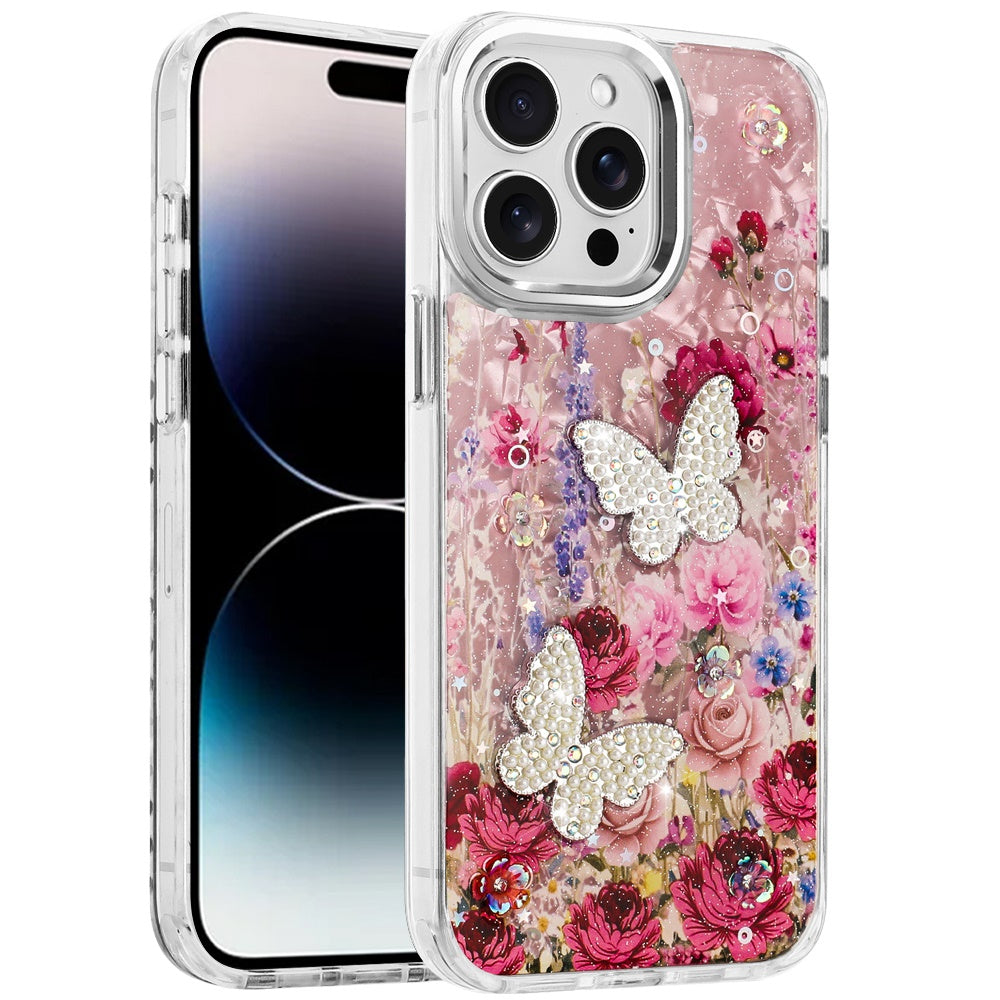 Floral Epoxy Glitter Phone Case with 3D Beaded Butterflies