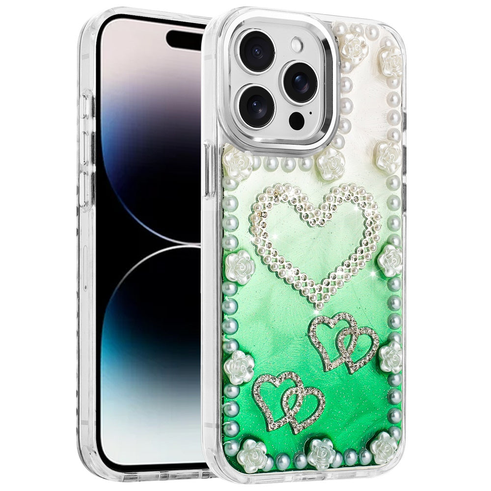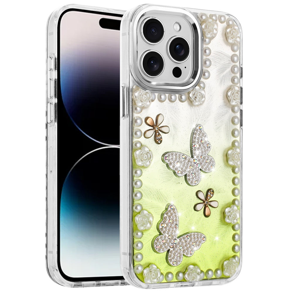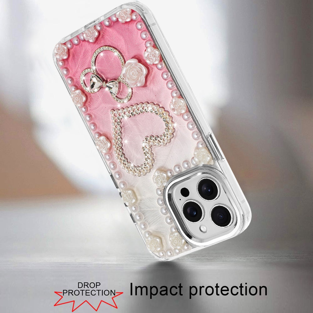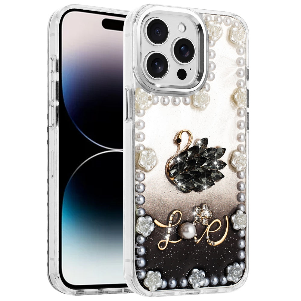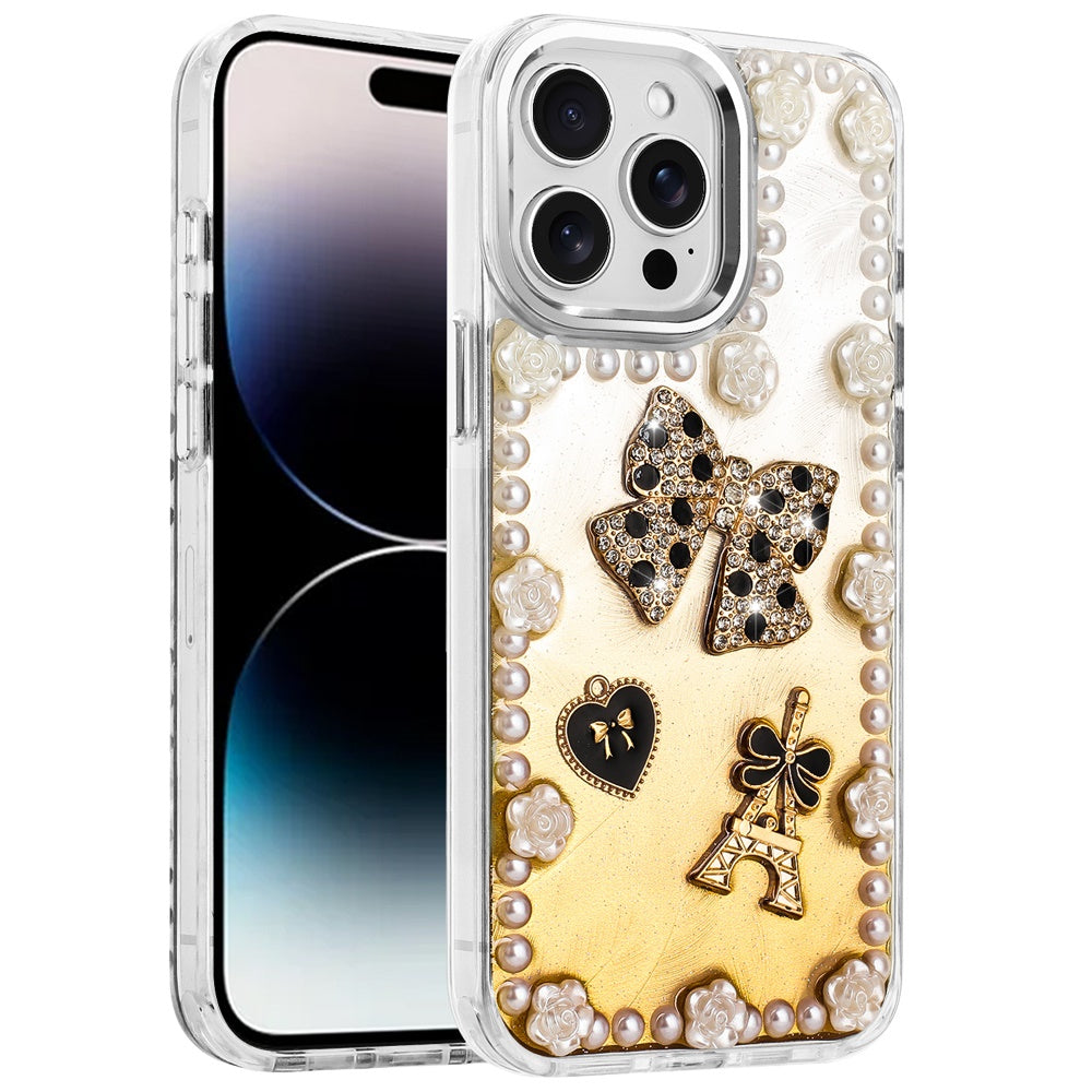 For iPhone 14 PRO MAX 6.7 in. Case Floral and Faux Pearl Trim with 3D Charms