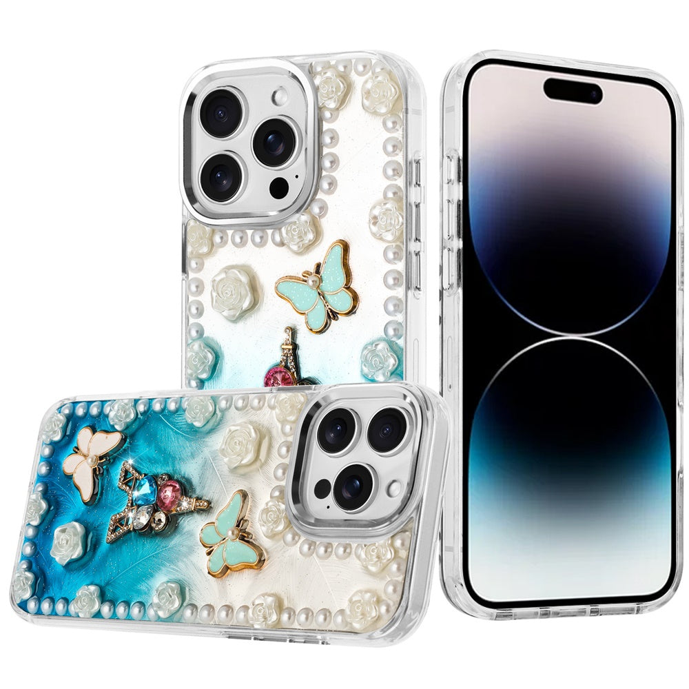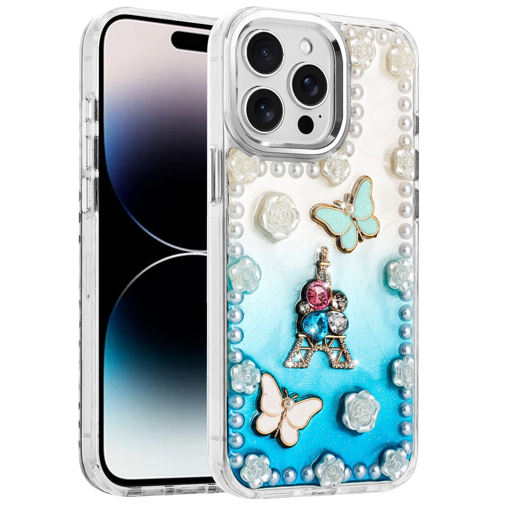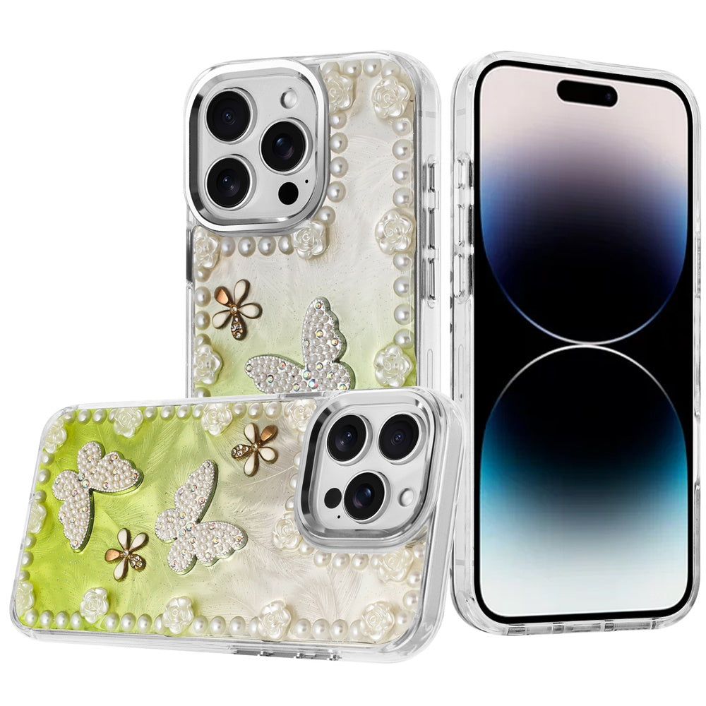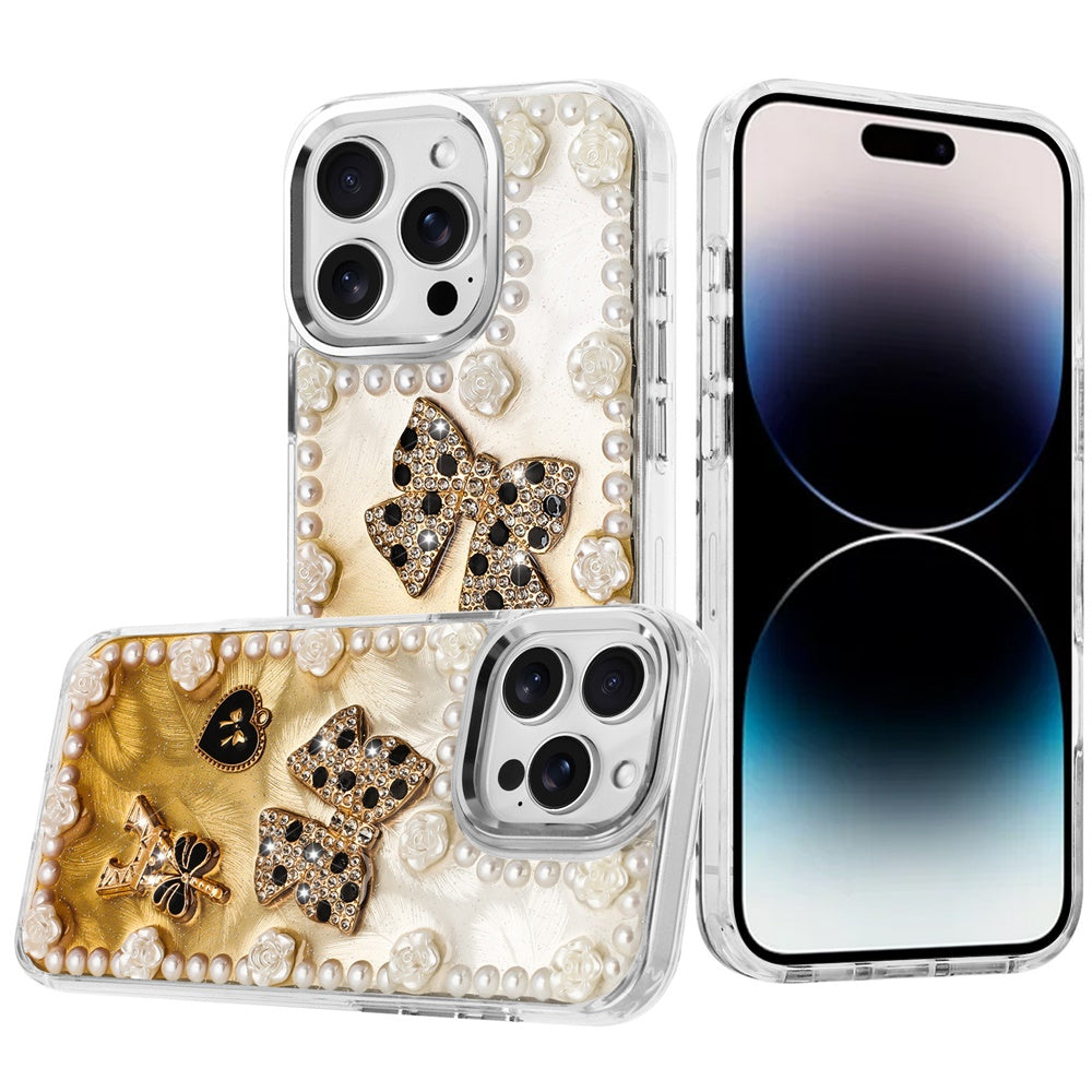 For iPhone 14 PRO MAX 6.7 in. Case Floral and Faux Pearl Trim with 3D Charms