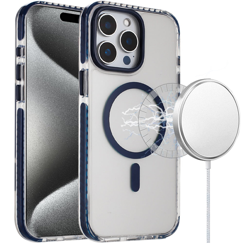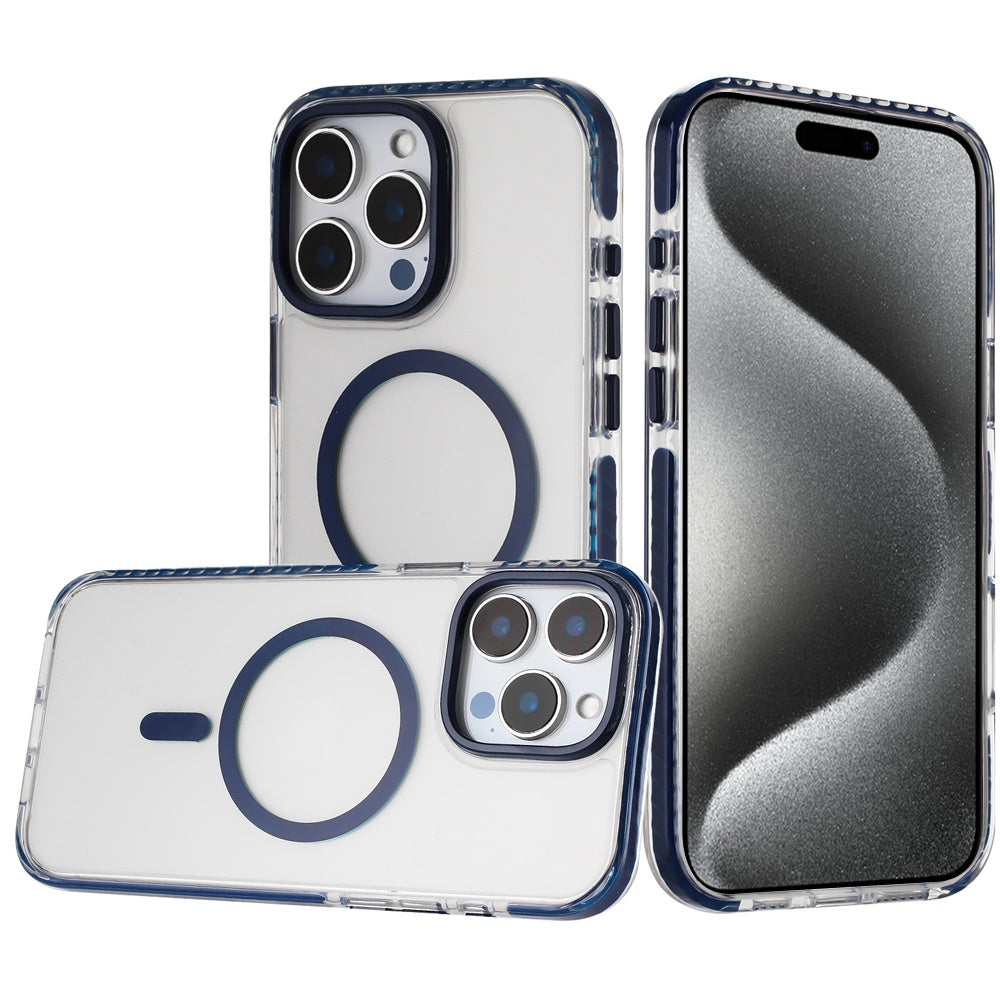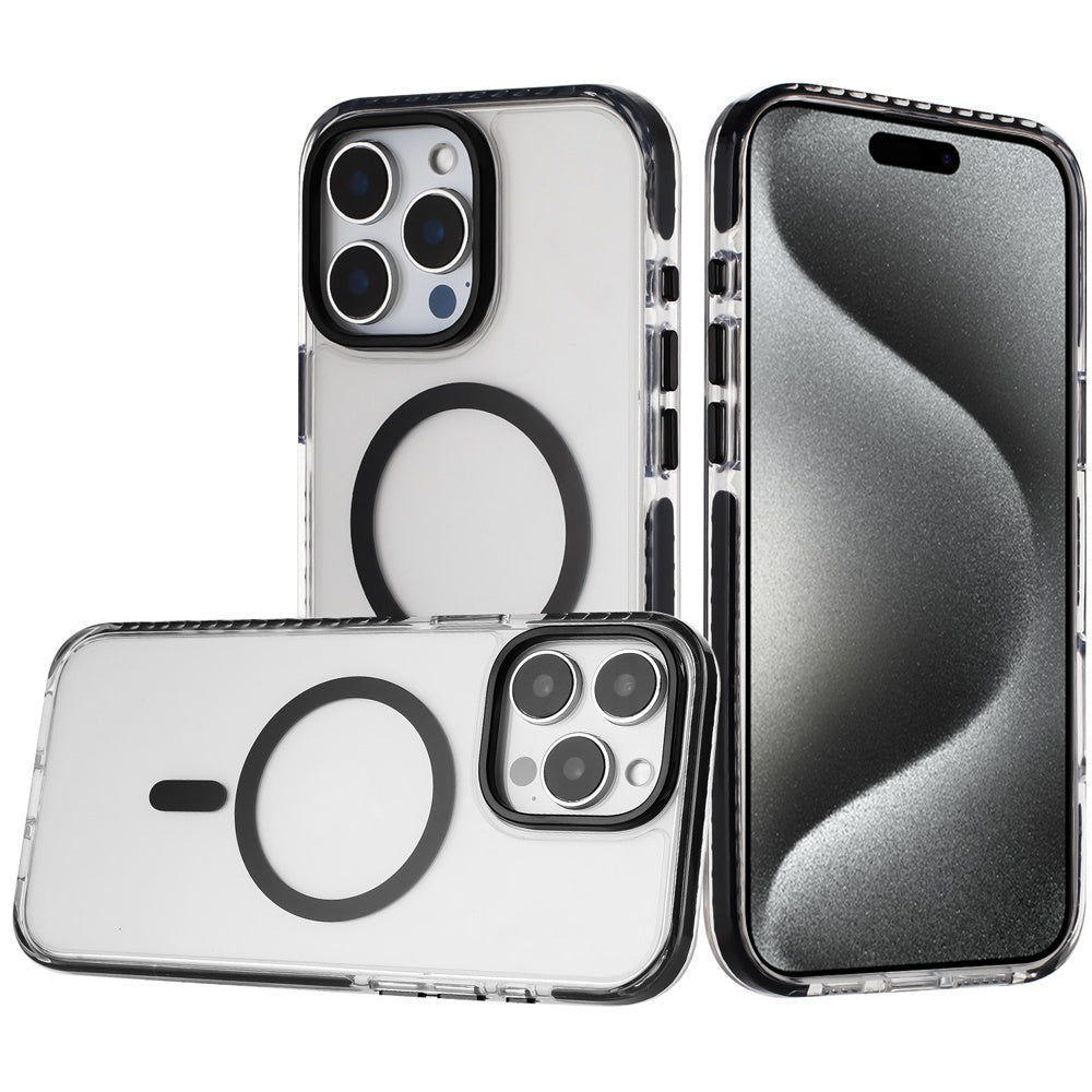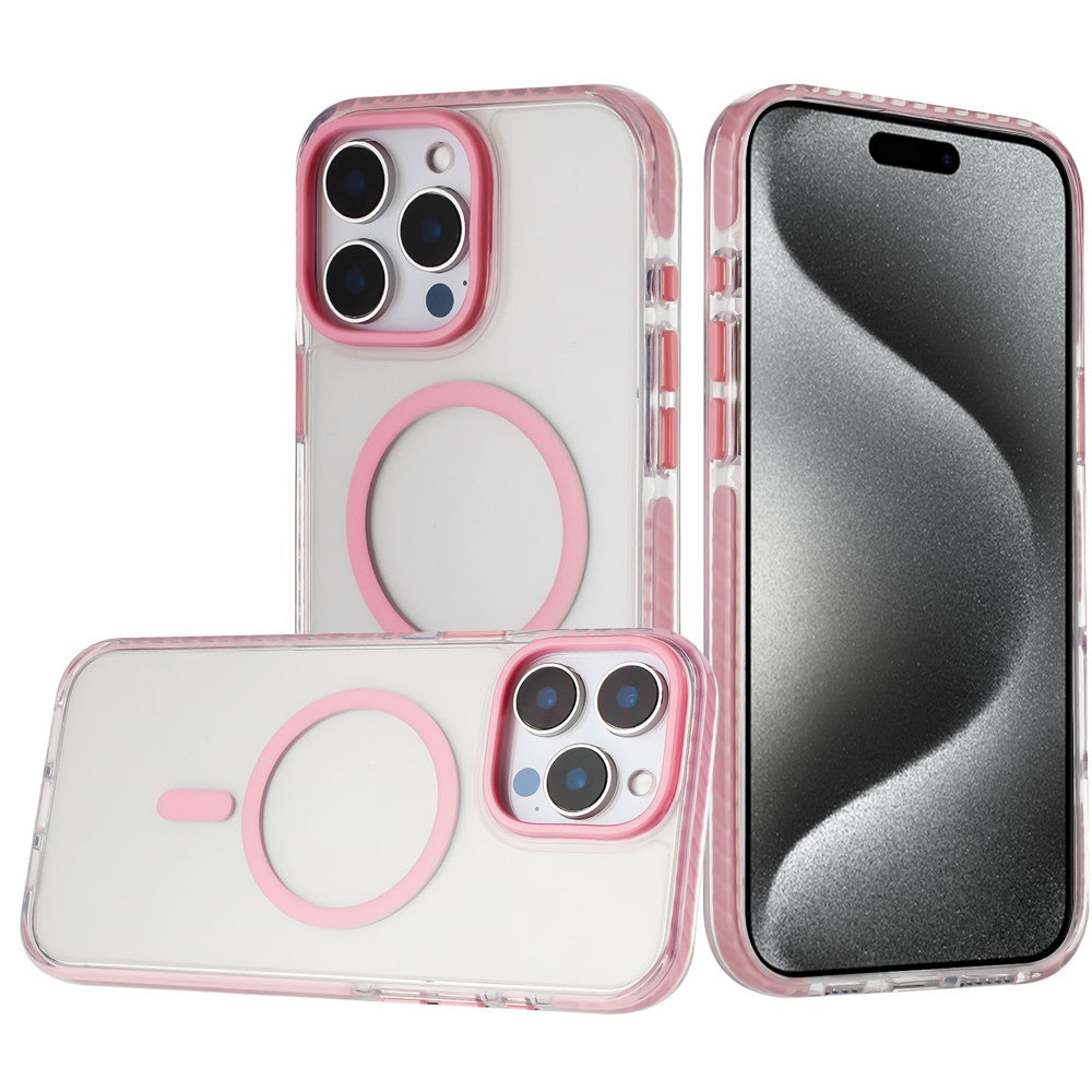 For iPhone 15 Pro Max Case Color Matching Trim Magnetic Circle +2 Tempered Glass