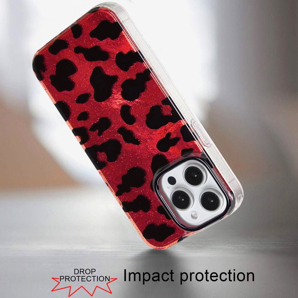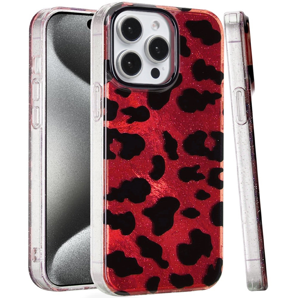 Glossy In Mold Design No Fade Print with Glitter TPU Cover + 2 Tempered Glass Screen Protector