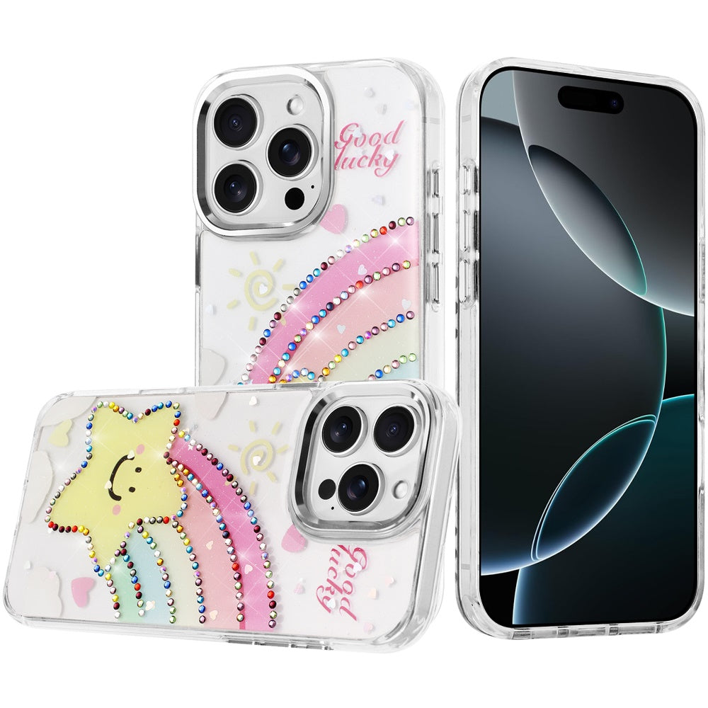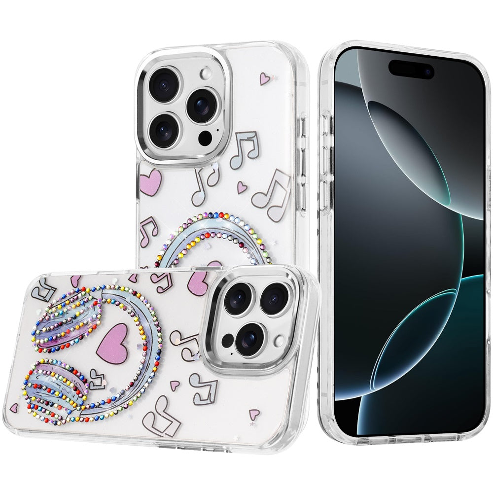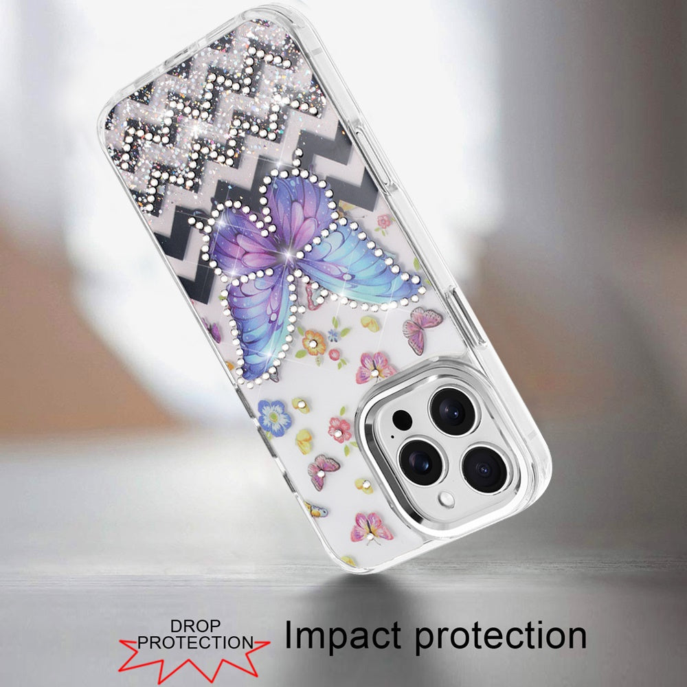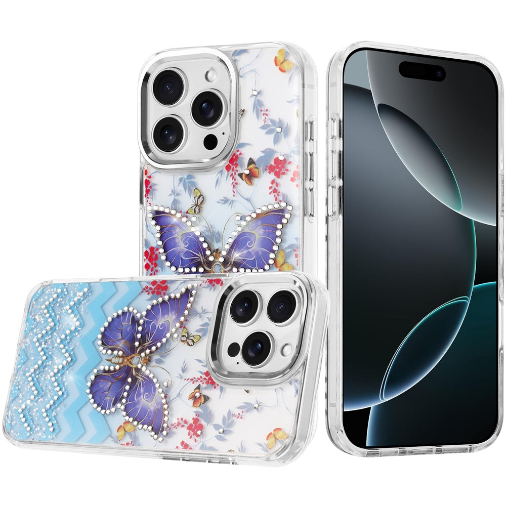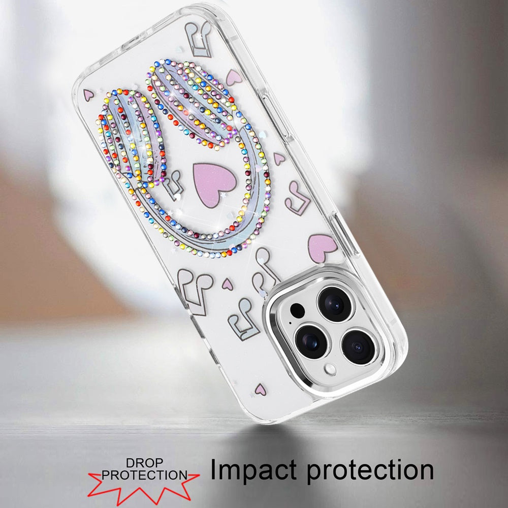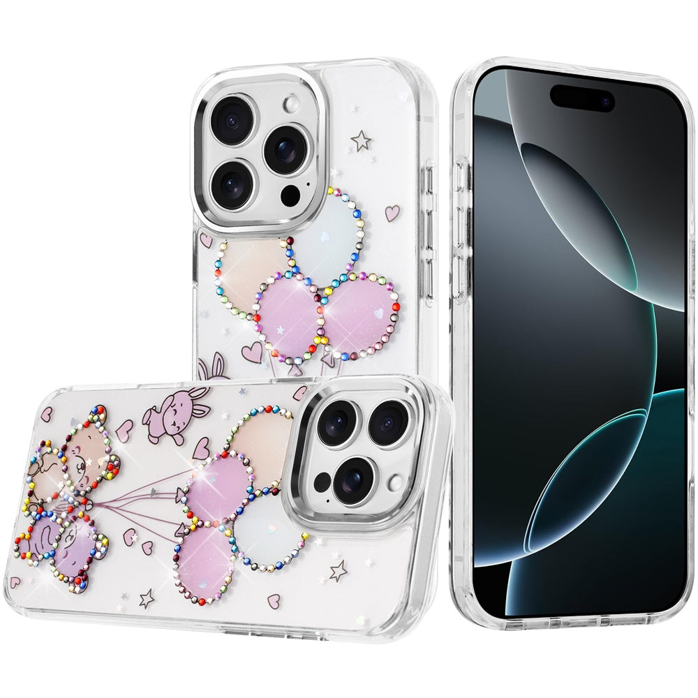 Colorful Epoxy Design with Plastic Jewels + Tempered Glass Screen Protector