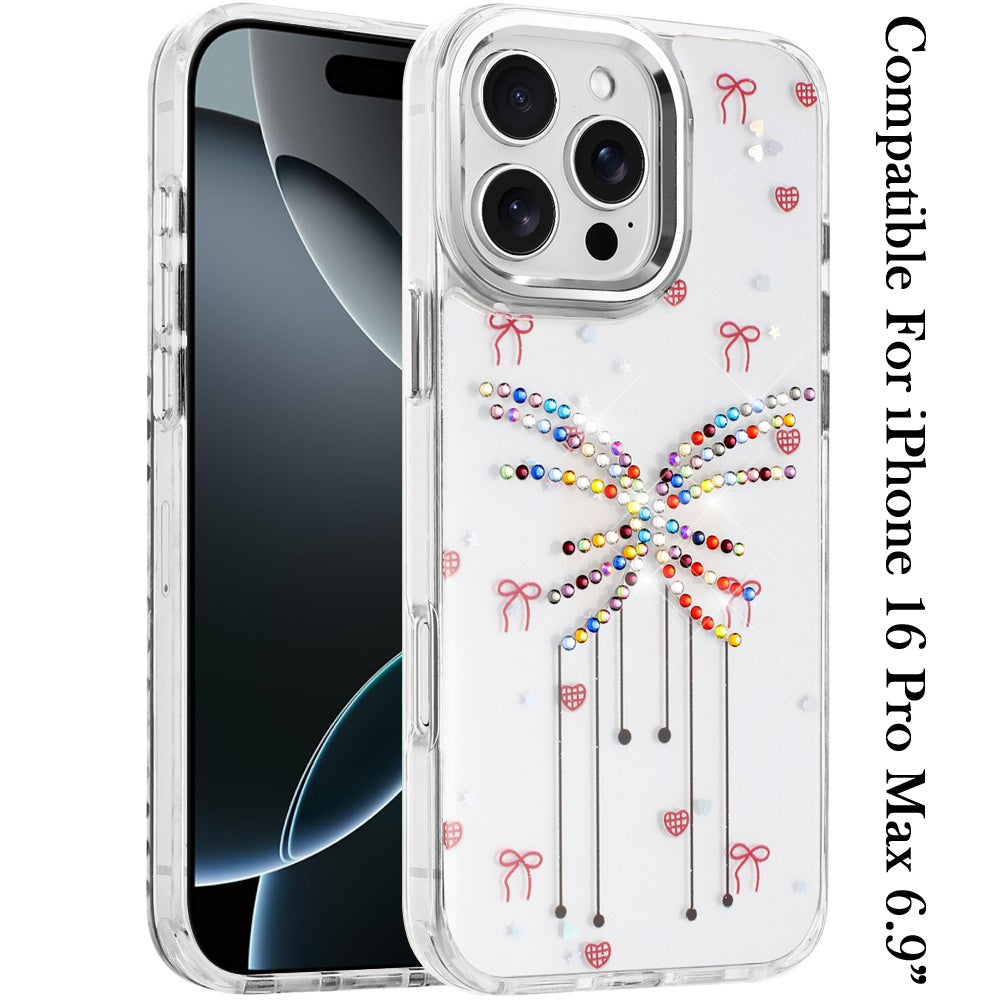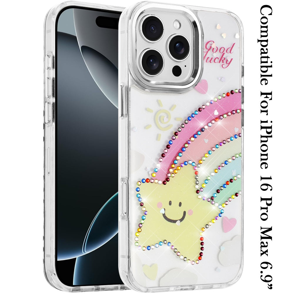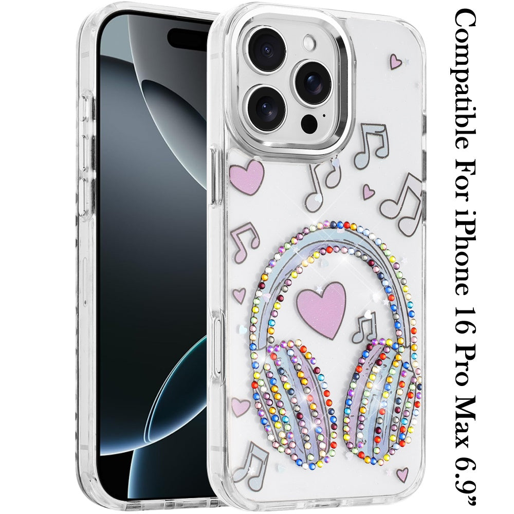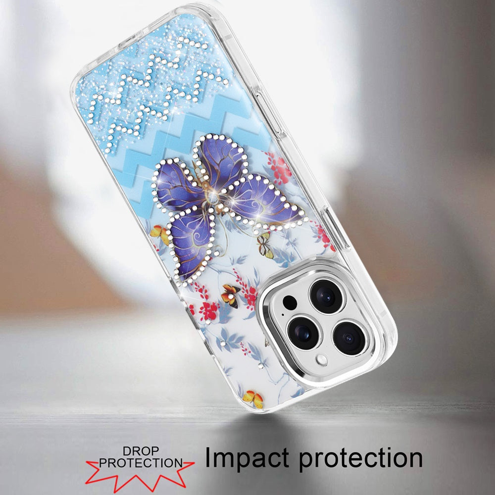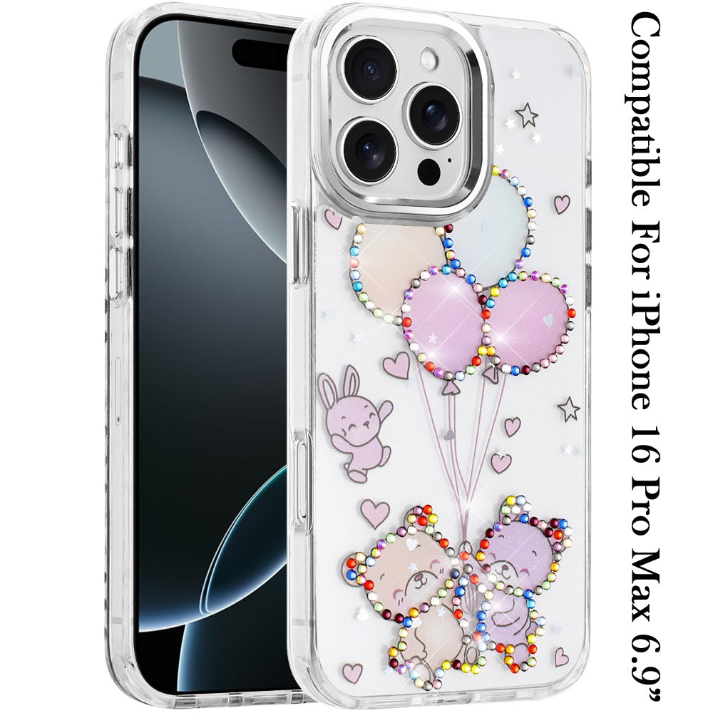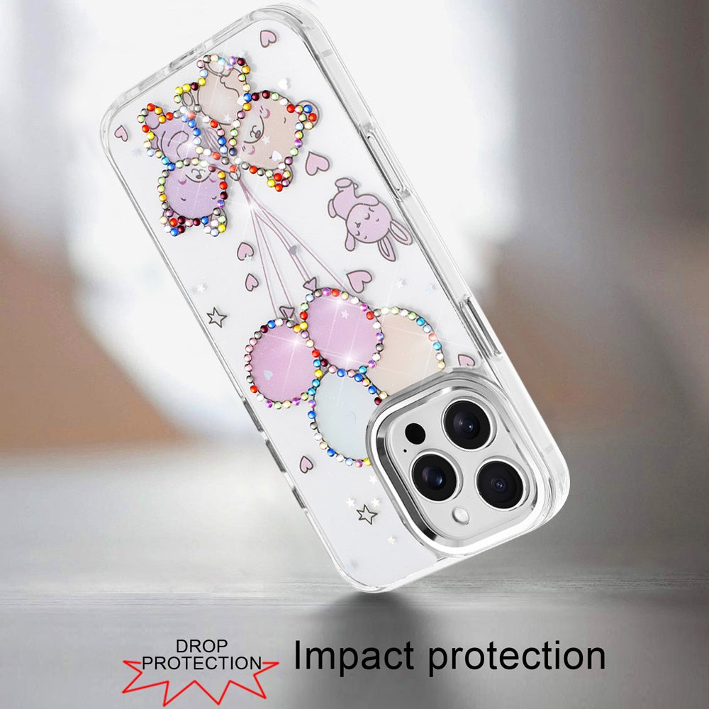 Colorful Epoxy Design with Plastic Jewels + Tempered Glass Screen Protector