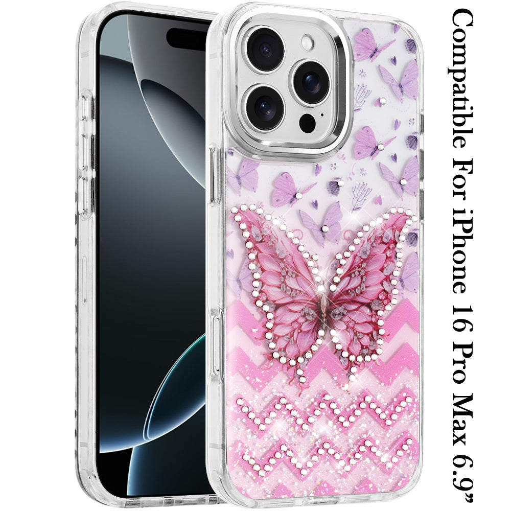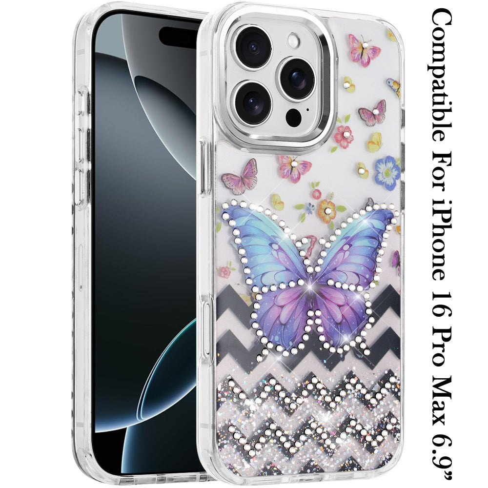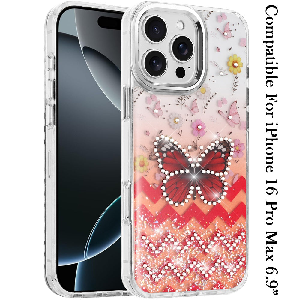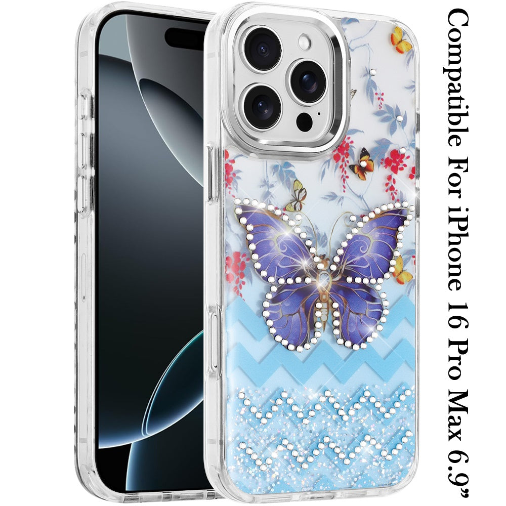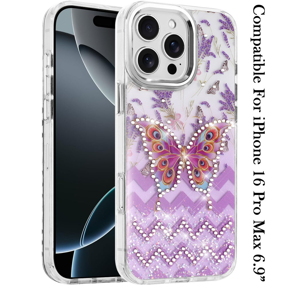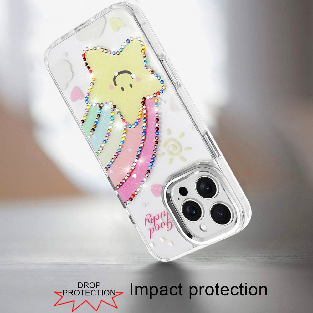 Colorful Epoxy Design with Plastic Jewels + Tempered Glass Screen Protector