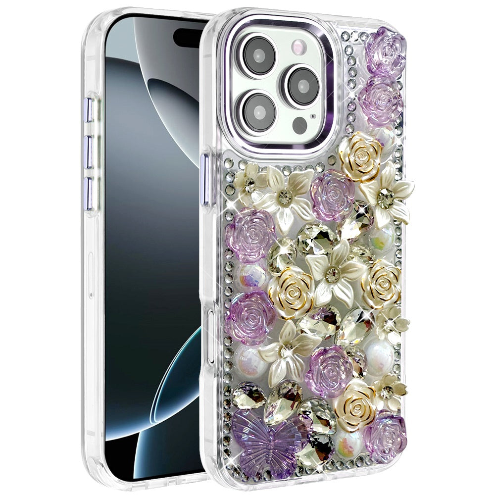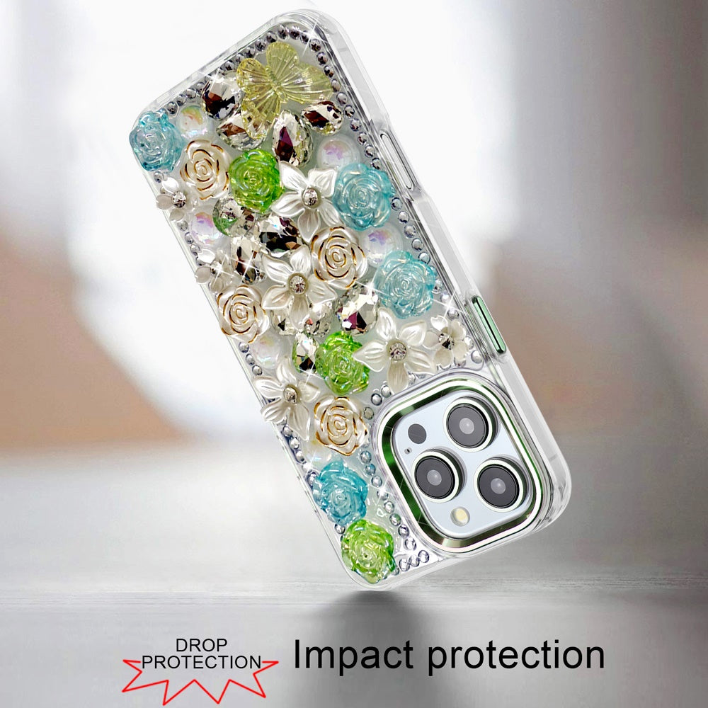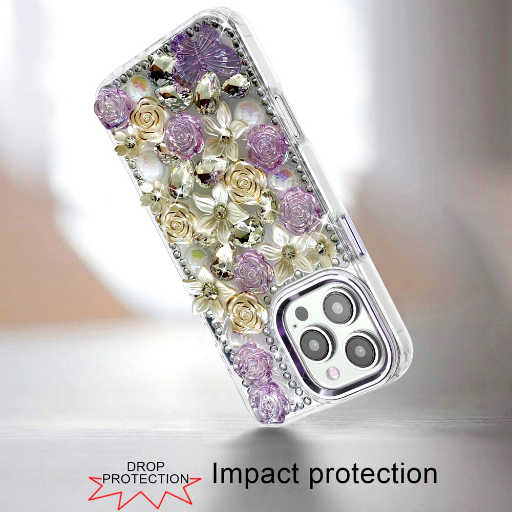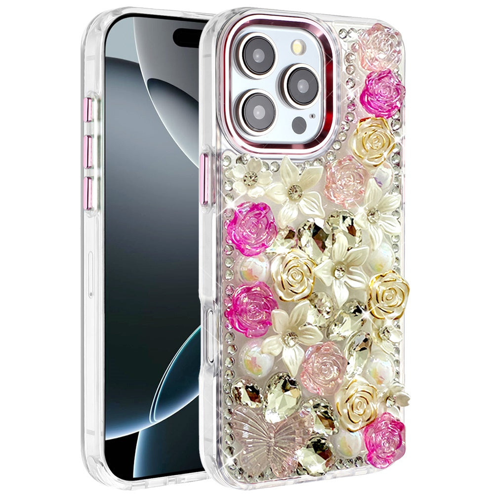 For iPhone 16 PRO MAX Case Floral Arrangement 3D Bling Cover + Tempered Glass