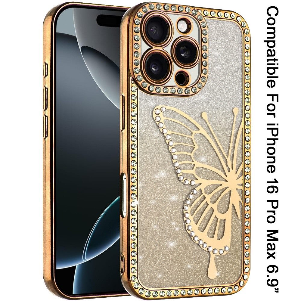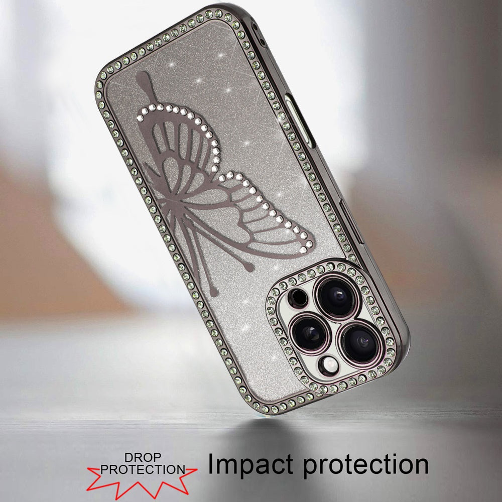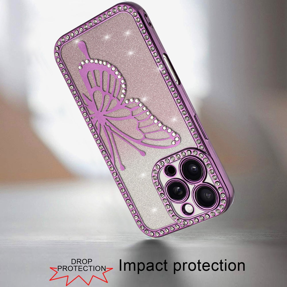 Large Bling Butterfly Full Glitter Phone Case + Tempered Glass Screen Protector