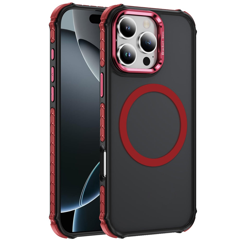 Metal Camera Lens Doubles as a Stand Phone Cover with Magnetic Circle + Tempered Glass Screen Protector
