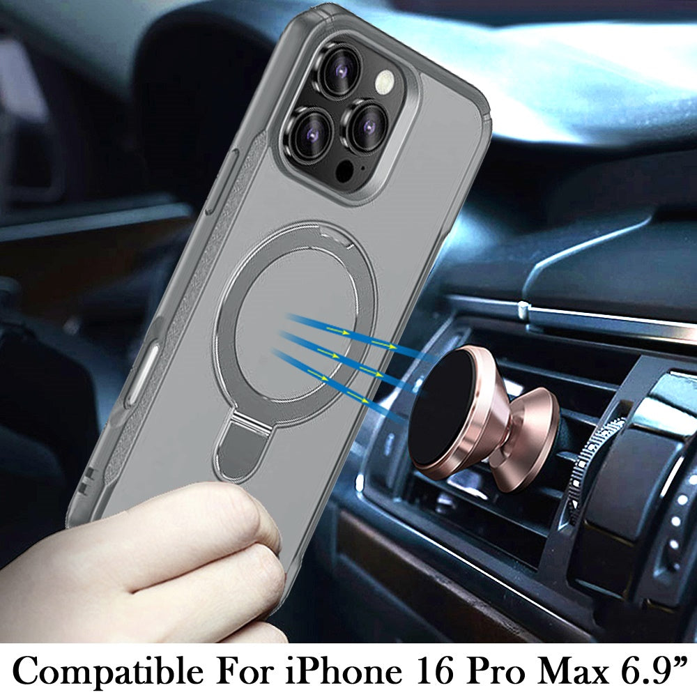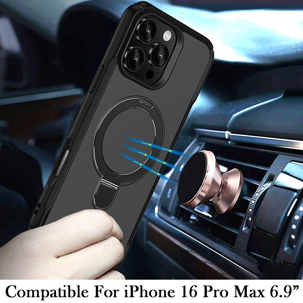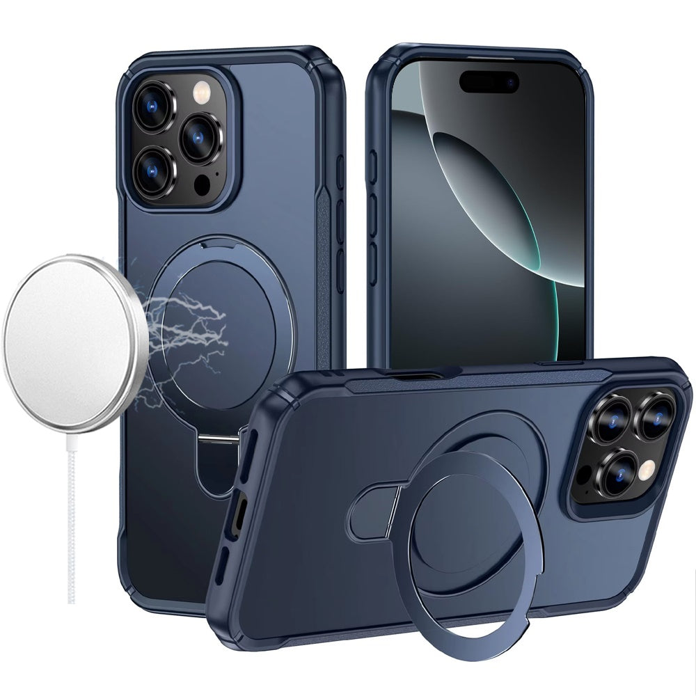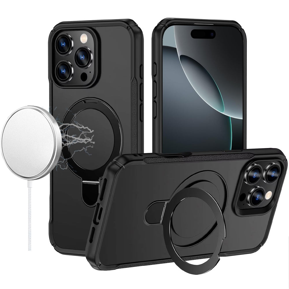 Shockproof Phone Cover with Magnetic Metal Circle Stand + Tempered Glass Screen Protector