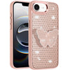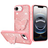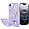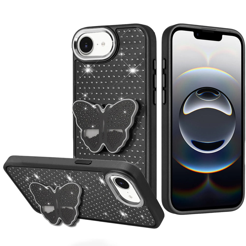 For iPhone 16e Case Butterfly Grip Stand w/ Faux Mini Crystals + Tempered Glass