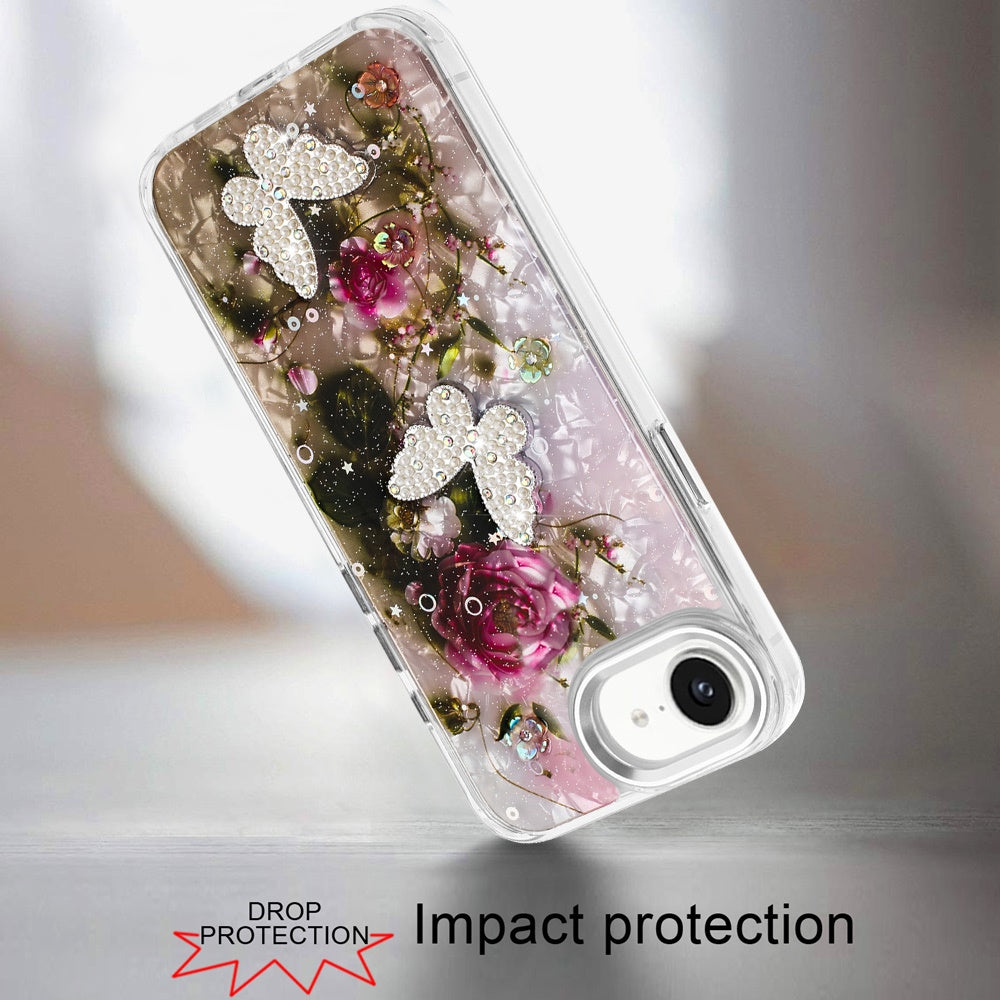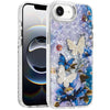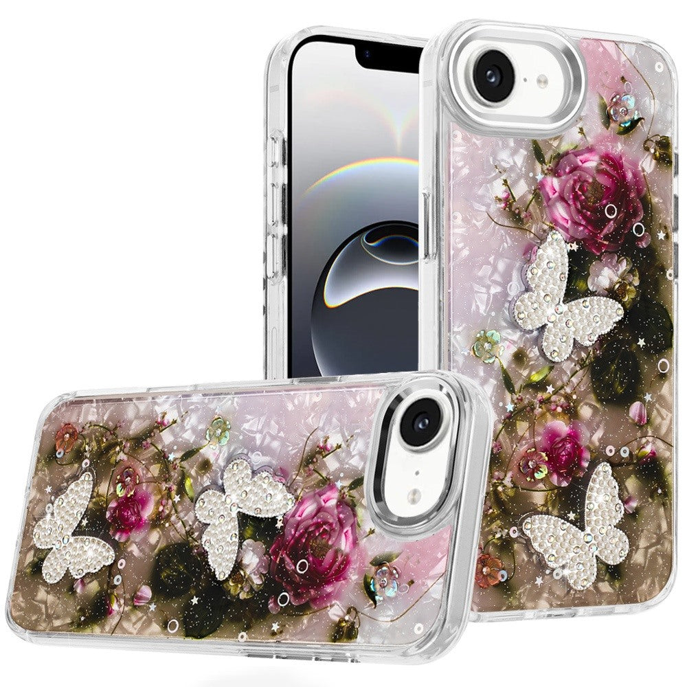 For iPhone 16e Case Epoxy Glitter with 3D Beaded Butterflies + Tempered Glass