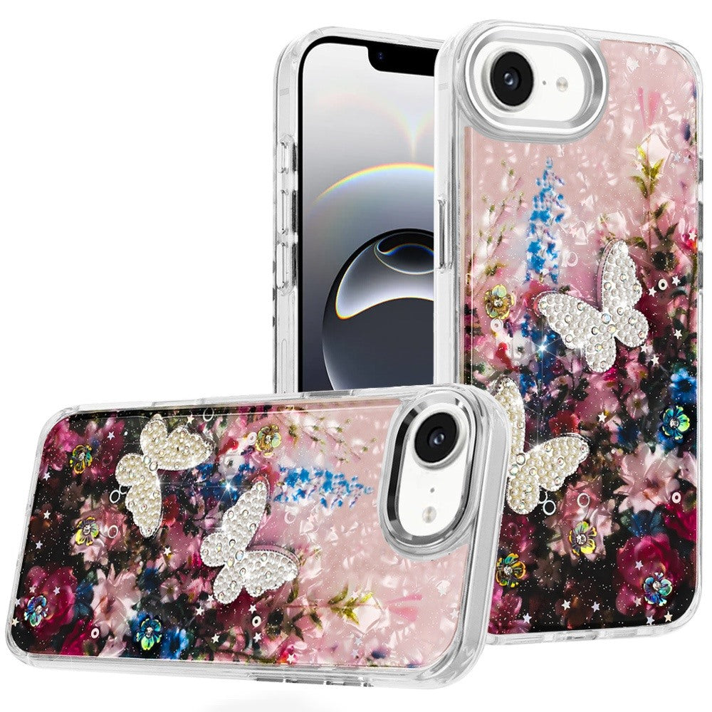 Floral Epoxy Glitter Case with 3D Beaded Butterflies + Tempered Glass Screen Protector