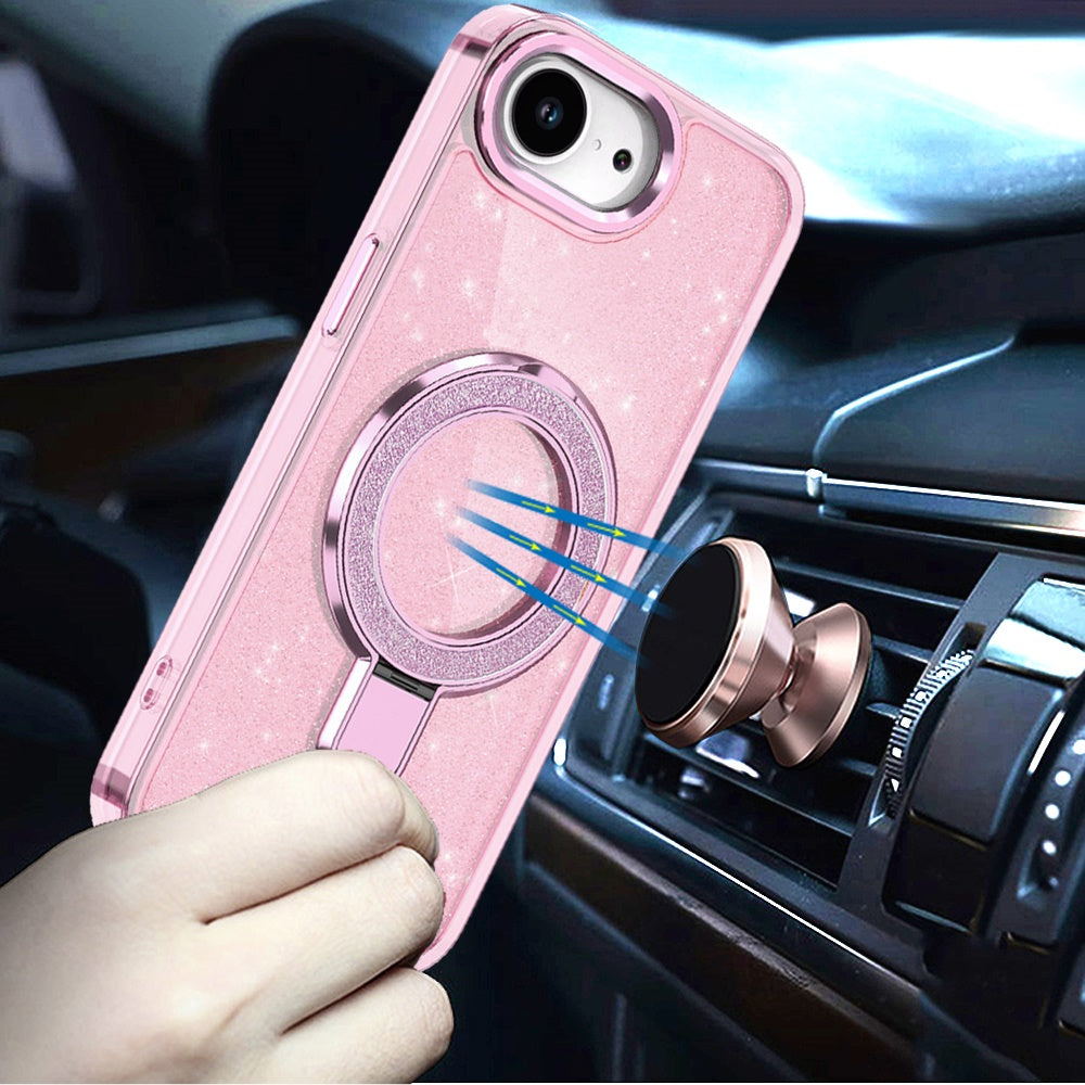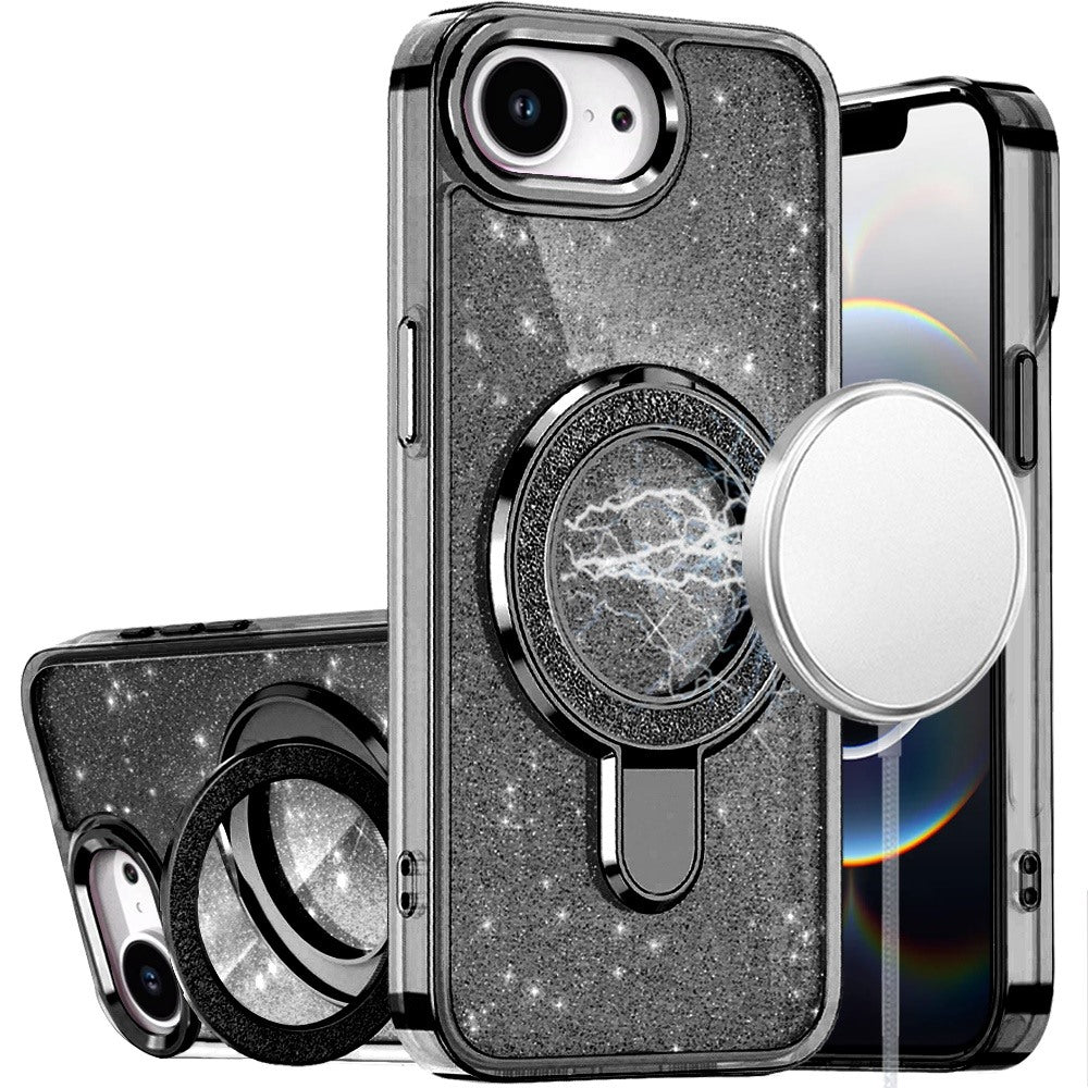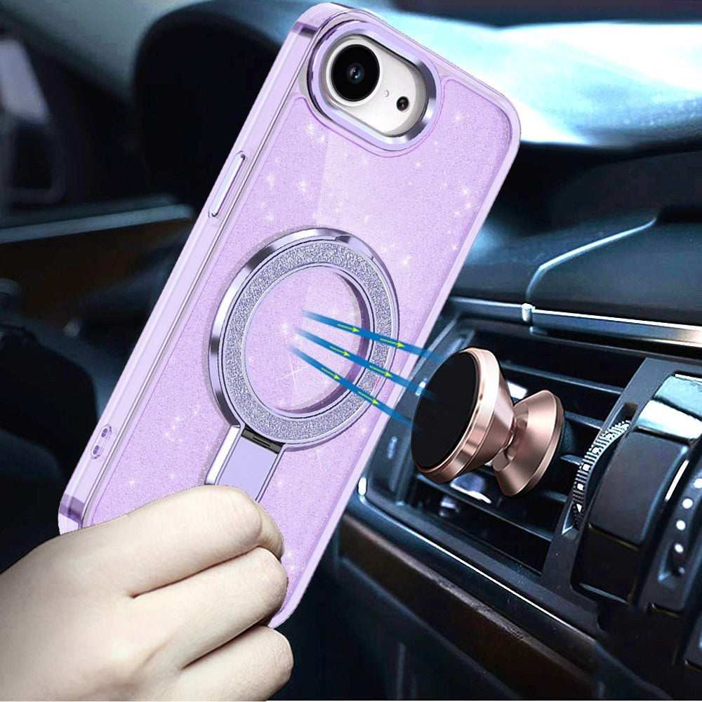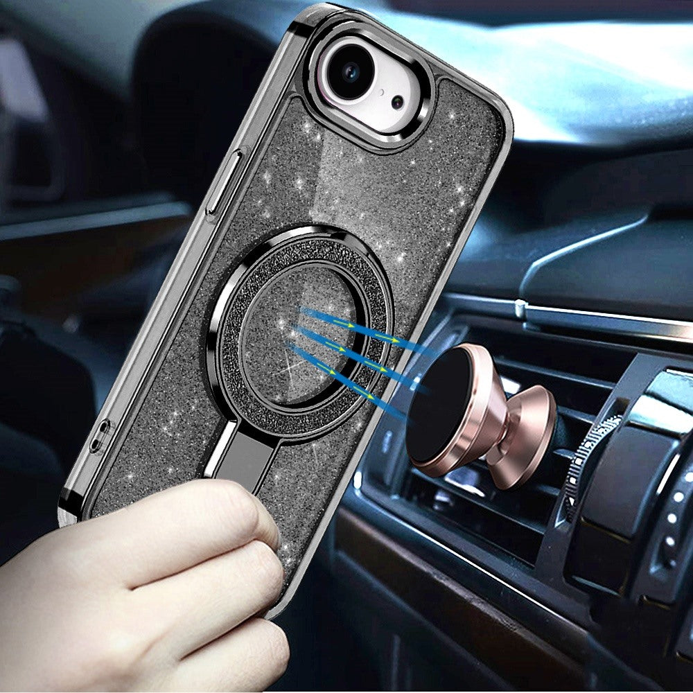 Translucent Glitter Phone Cover with Glitter Magnetic Circle Doubles as a Stand + Tempered Glass Screen Protector