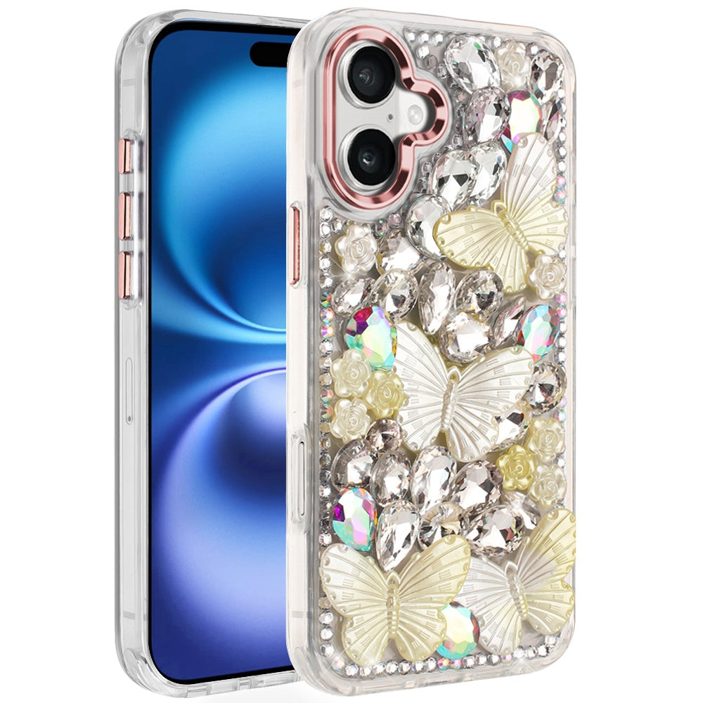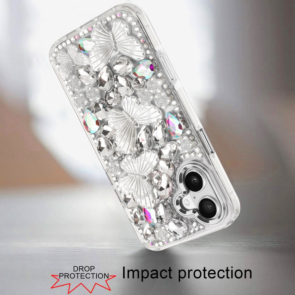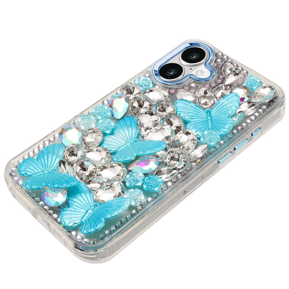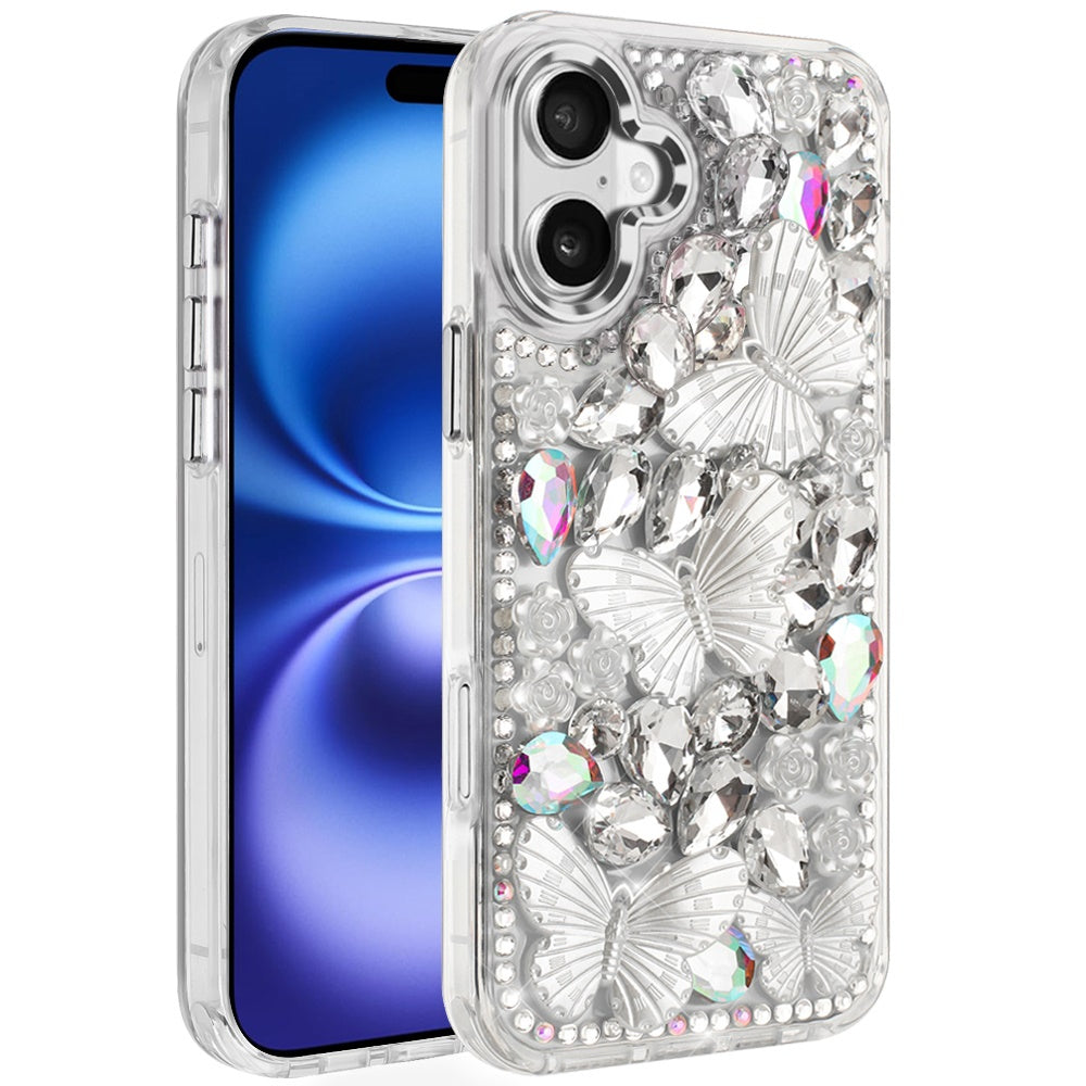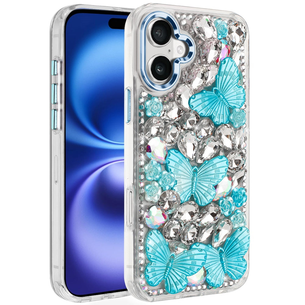 Bling 3D Diamond Large Butterflies Bling Phone Cover + Tempered Glass Screen Protector