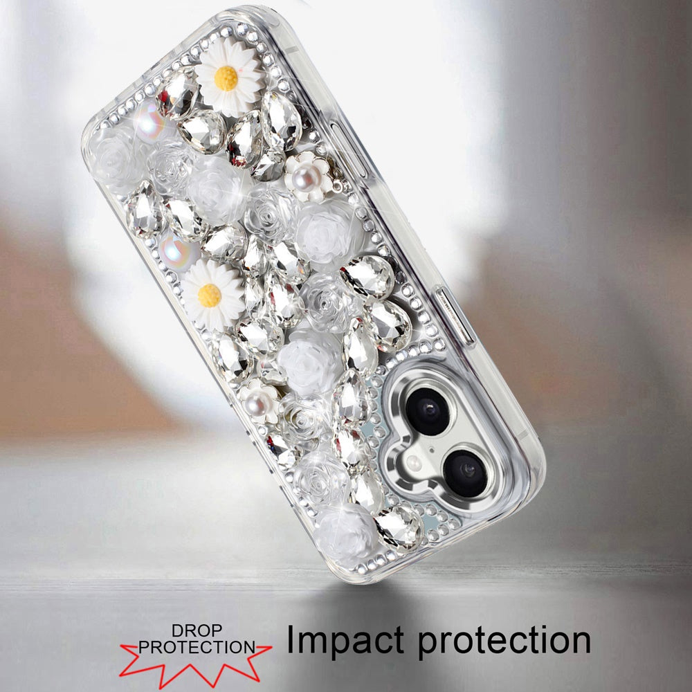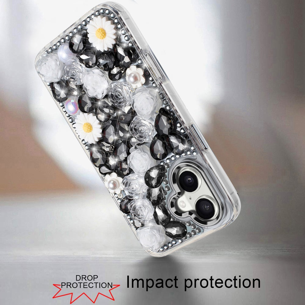 Full Bling 3D Rose Rhinestone Fashion Phone Case Cover + Tempered Glass Screen Protector