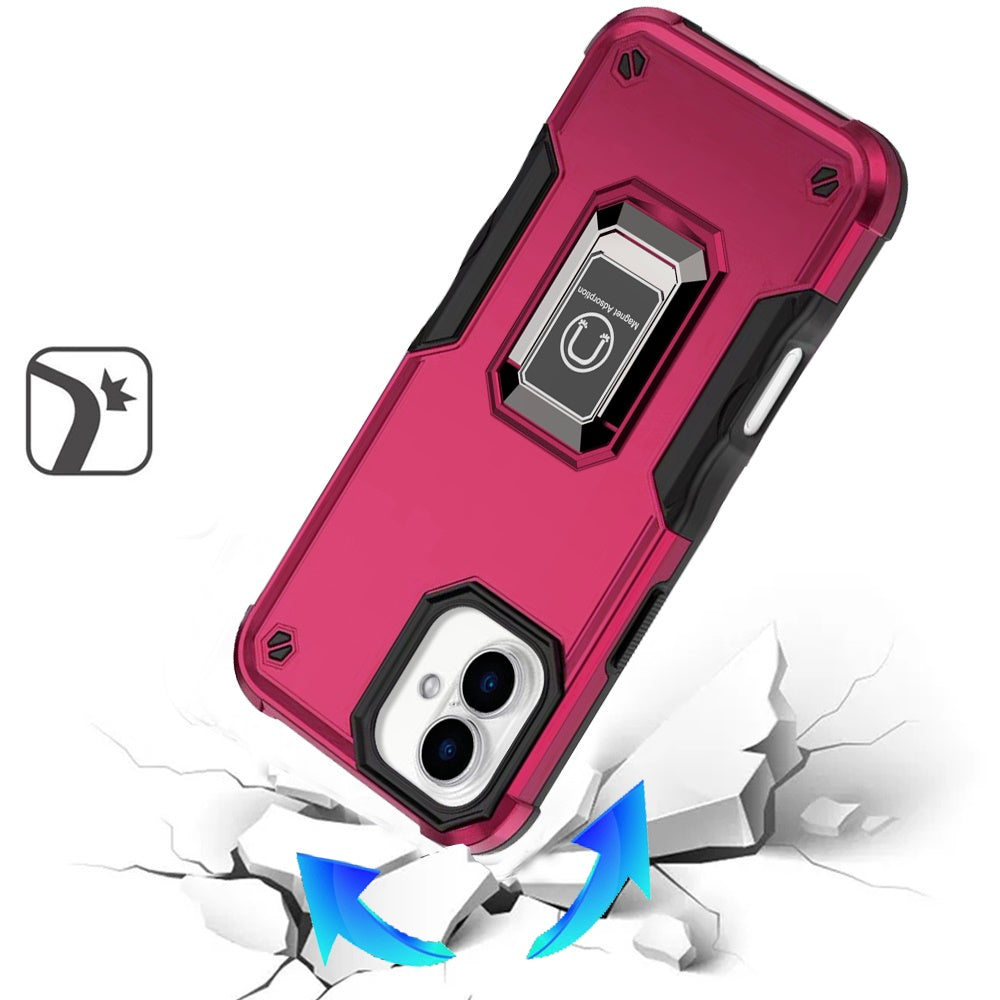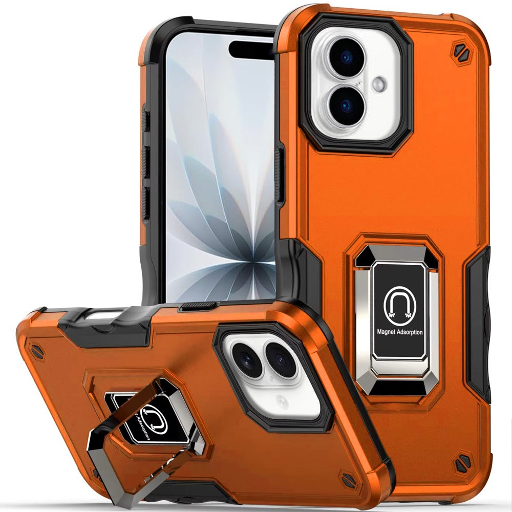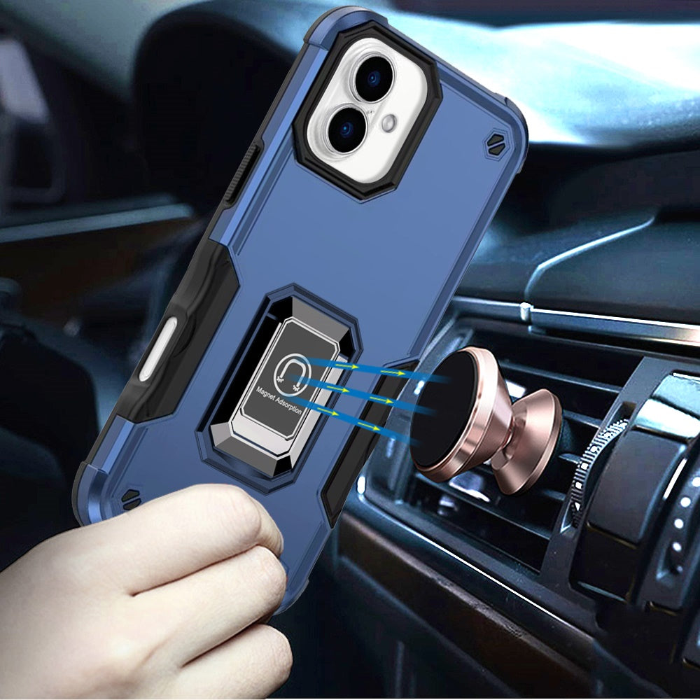 Grip Design Metal Ring Stand Protective Phone Case + Tempered Glass Screen Protector