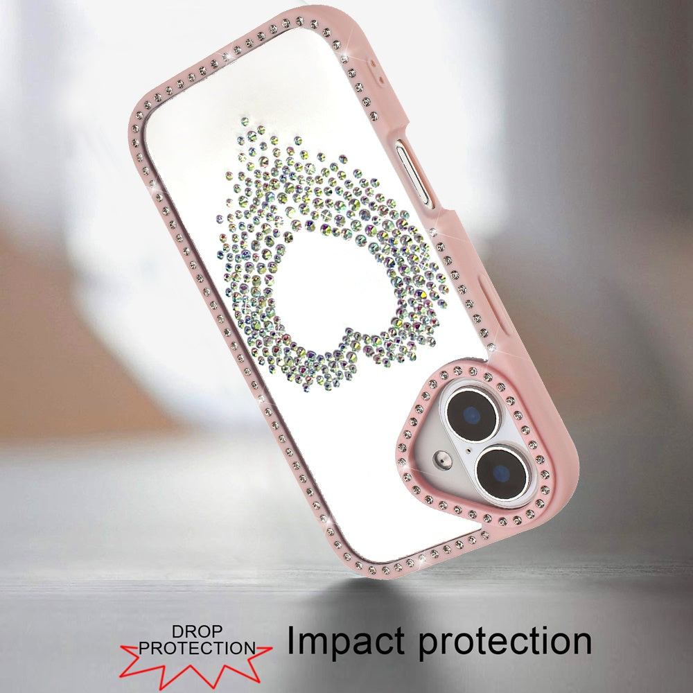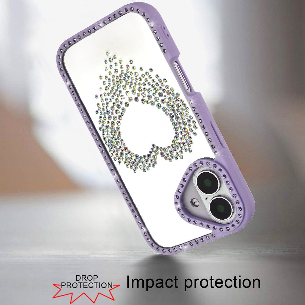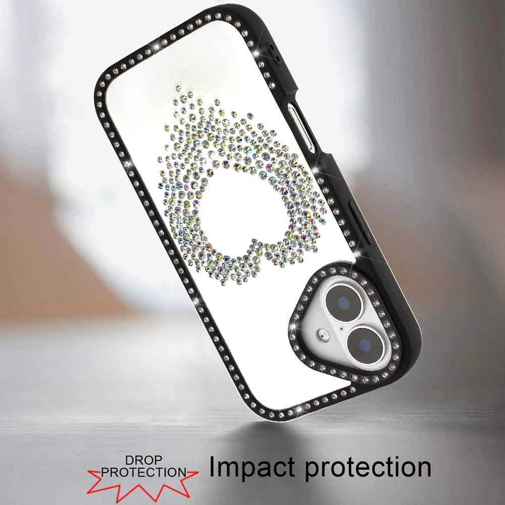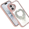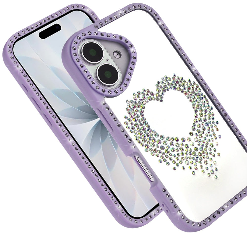 For iPhone 17 Case Heart Shaped Crystals w/ Bling Border Trim + Tempered Glass