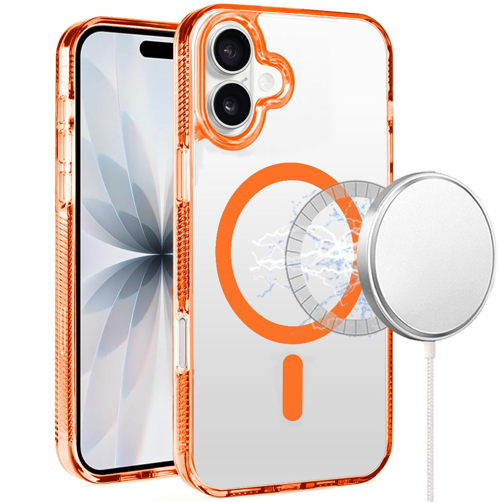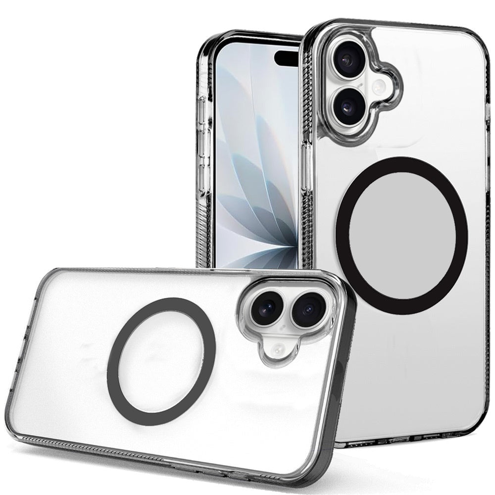 For iPhone 17 Case Magnetic Circle Grip Sides on Clear Hybrid + Tempered Glass