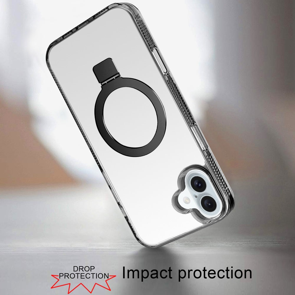 For iPhone 17 Case Magnetic Circle Metal Stand Translucent Grip + Tempered Glass