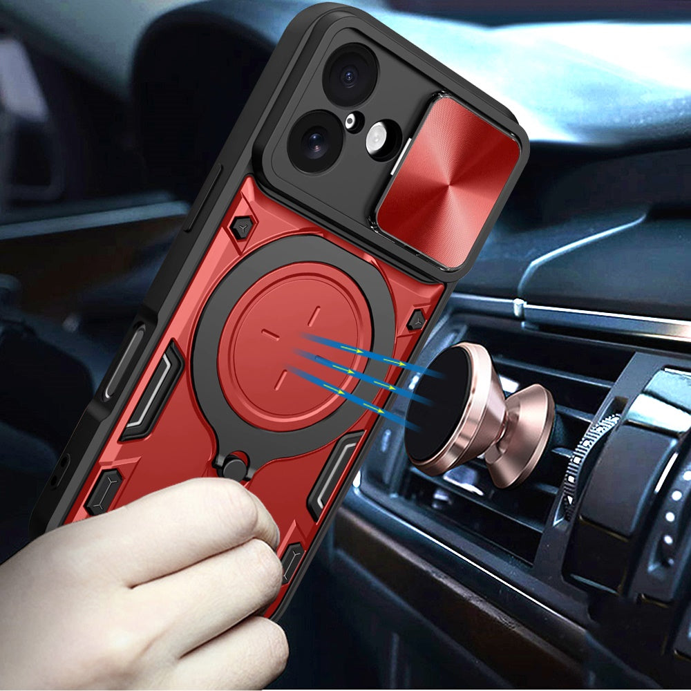 For iPhone 17 Case Magnetic Circle Stand Sliding Lens Cover + Tempered Glass