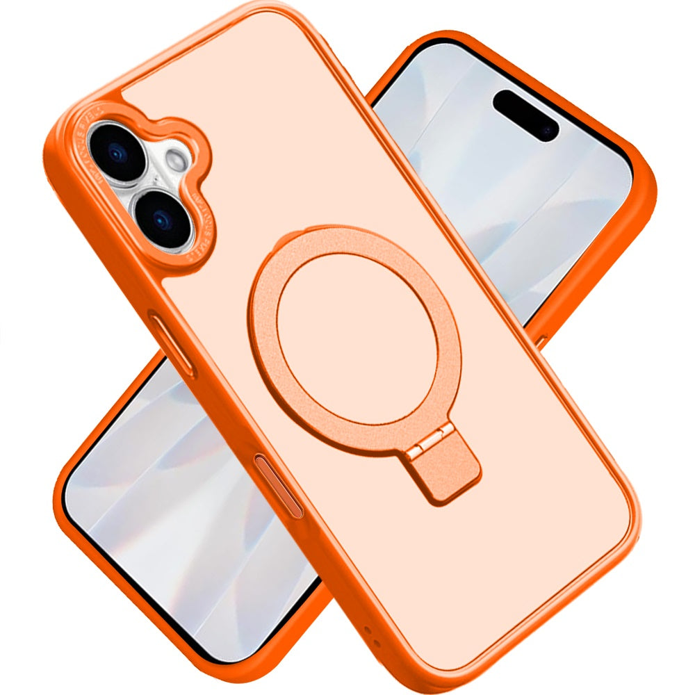 For iPhone 17 Case Metal Chrome Magnetic Circle Ring Stand + Tempered Glass