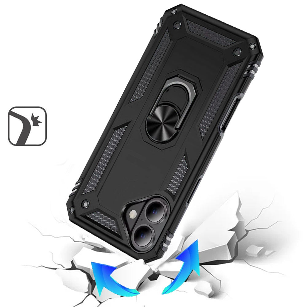 Ring Dual Layer Fused Hybrid Phone Case Cover + Tempered Glass Screen Protector