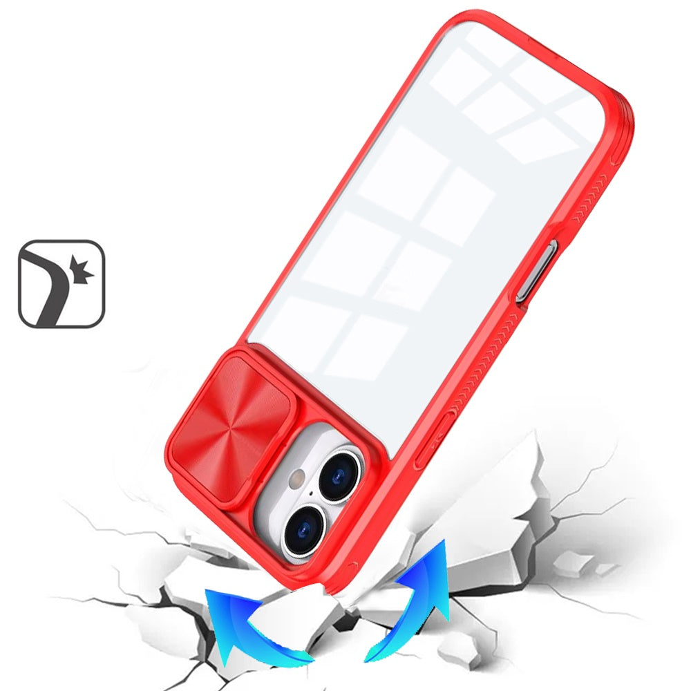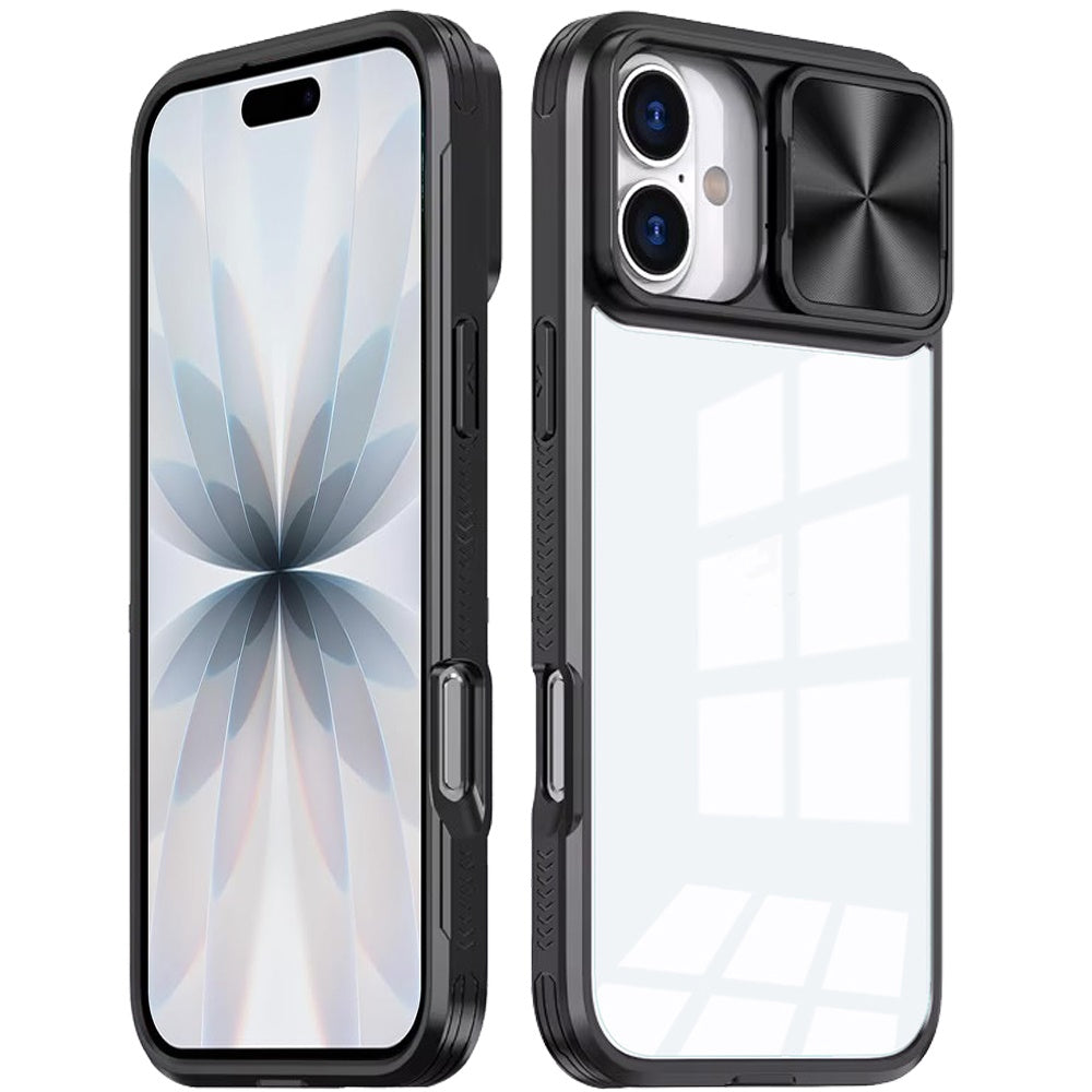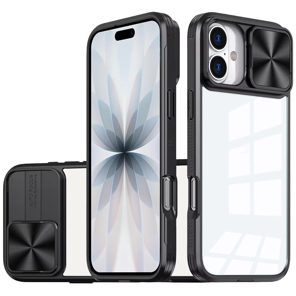 Rear Lens Sliding Cover Rugged Hybrid Clear Back + Tempered Glass Screen Protector