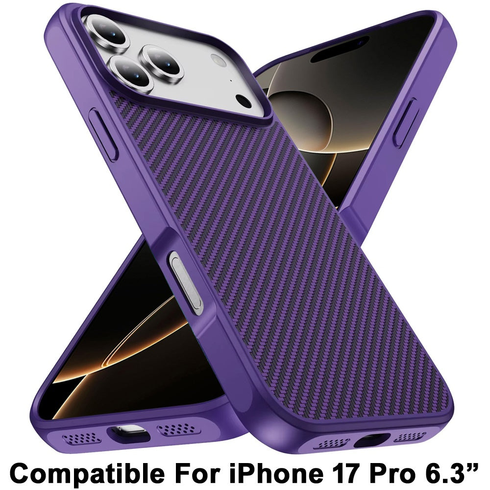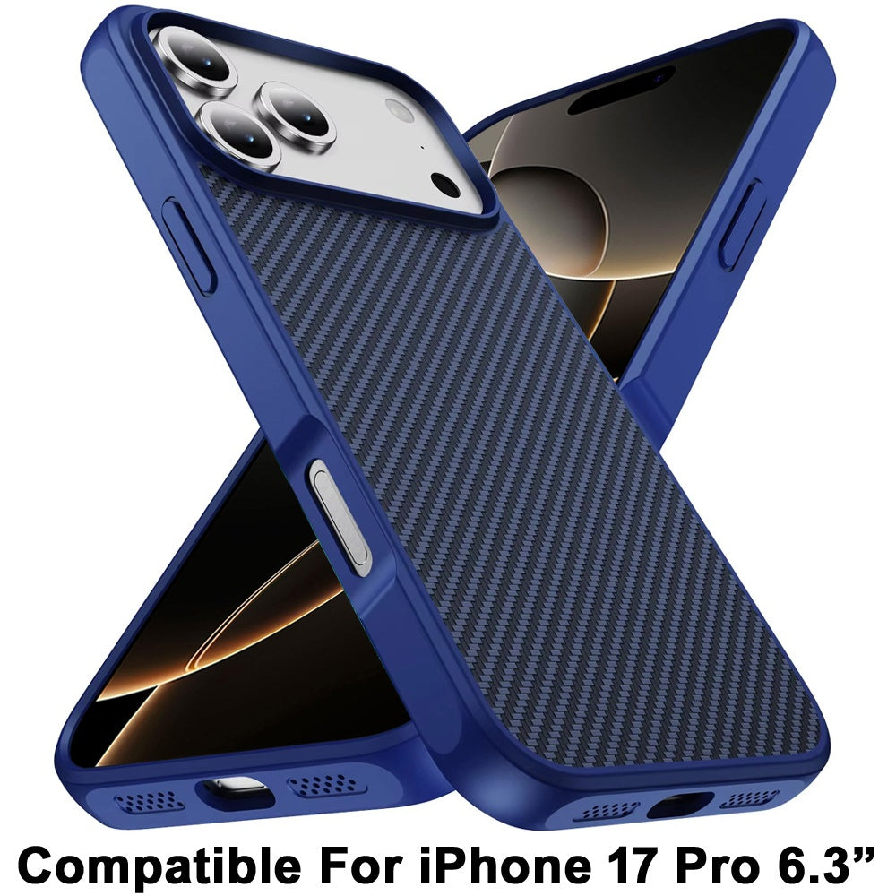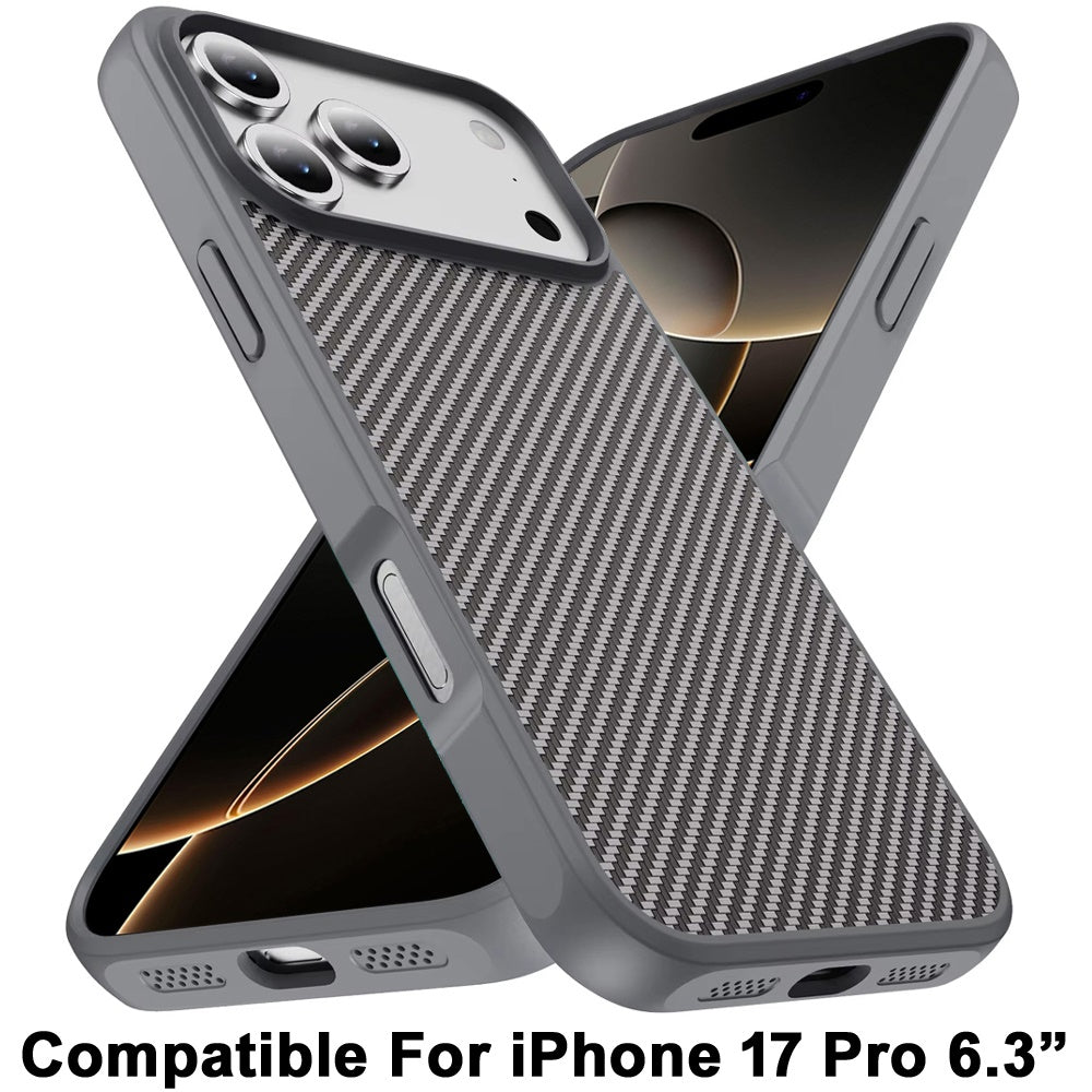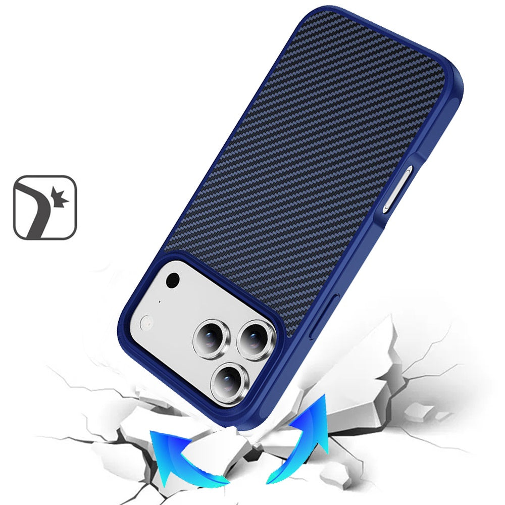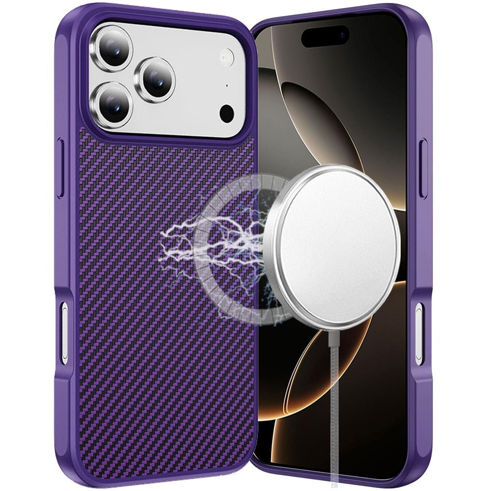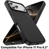 For iPhone 17 PRO Case Carbon Fiber Print Hidden Magnetic Circle +Tempered Glass