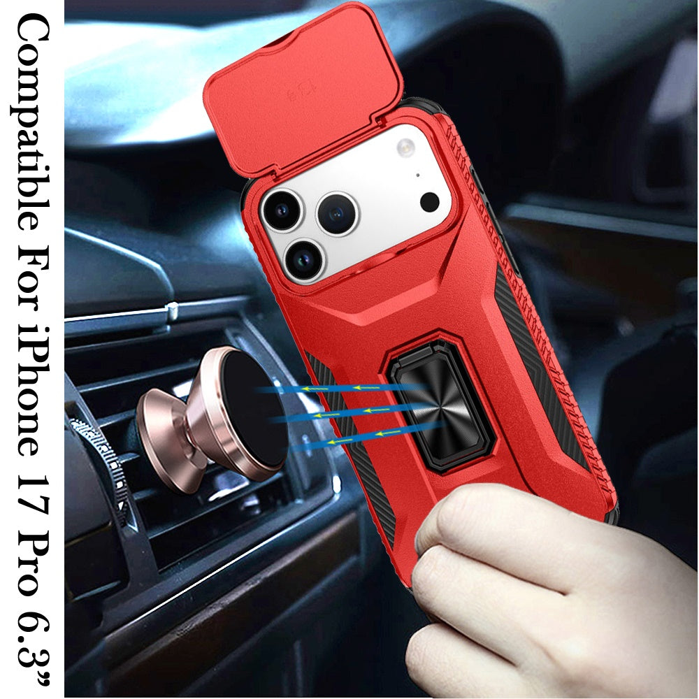 For iPhone 17 PRO Case Full Coverage Metal Stand and Lens Cover + Tempered Glass