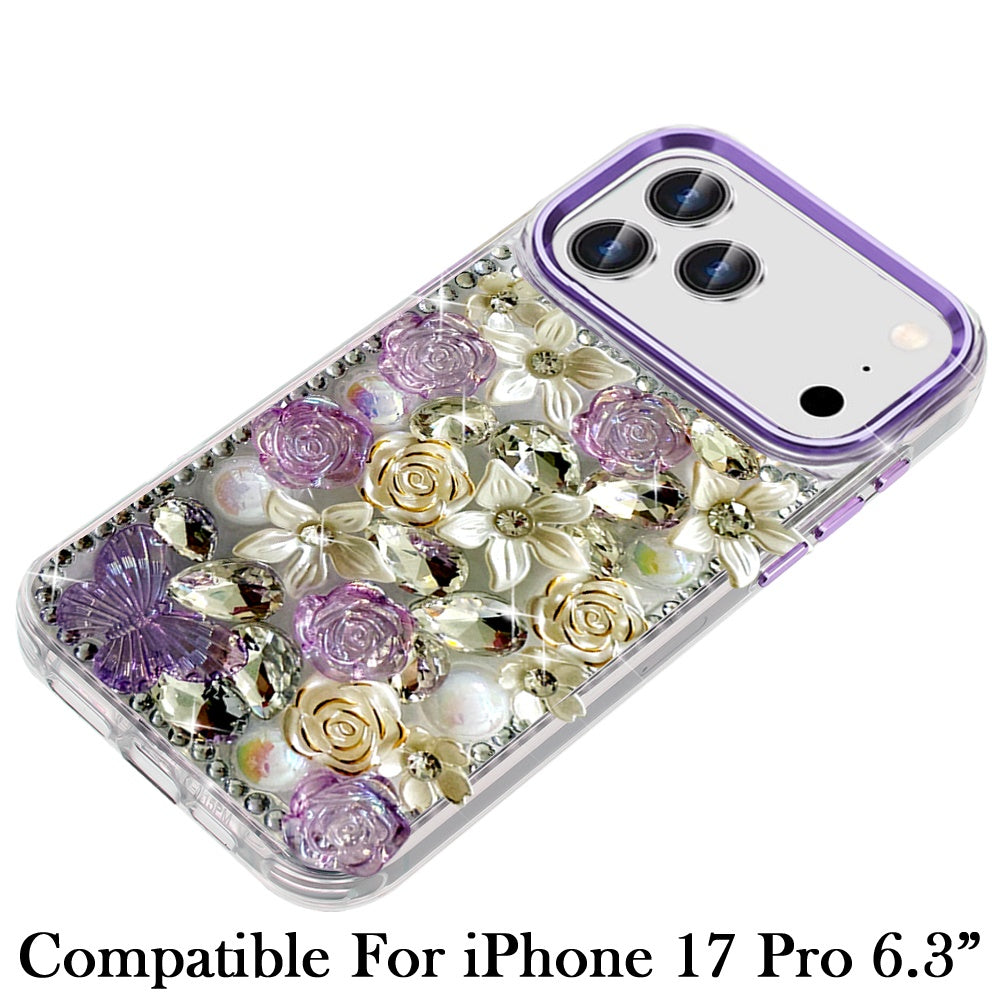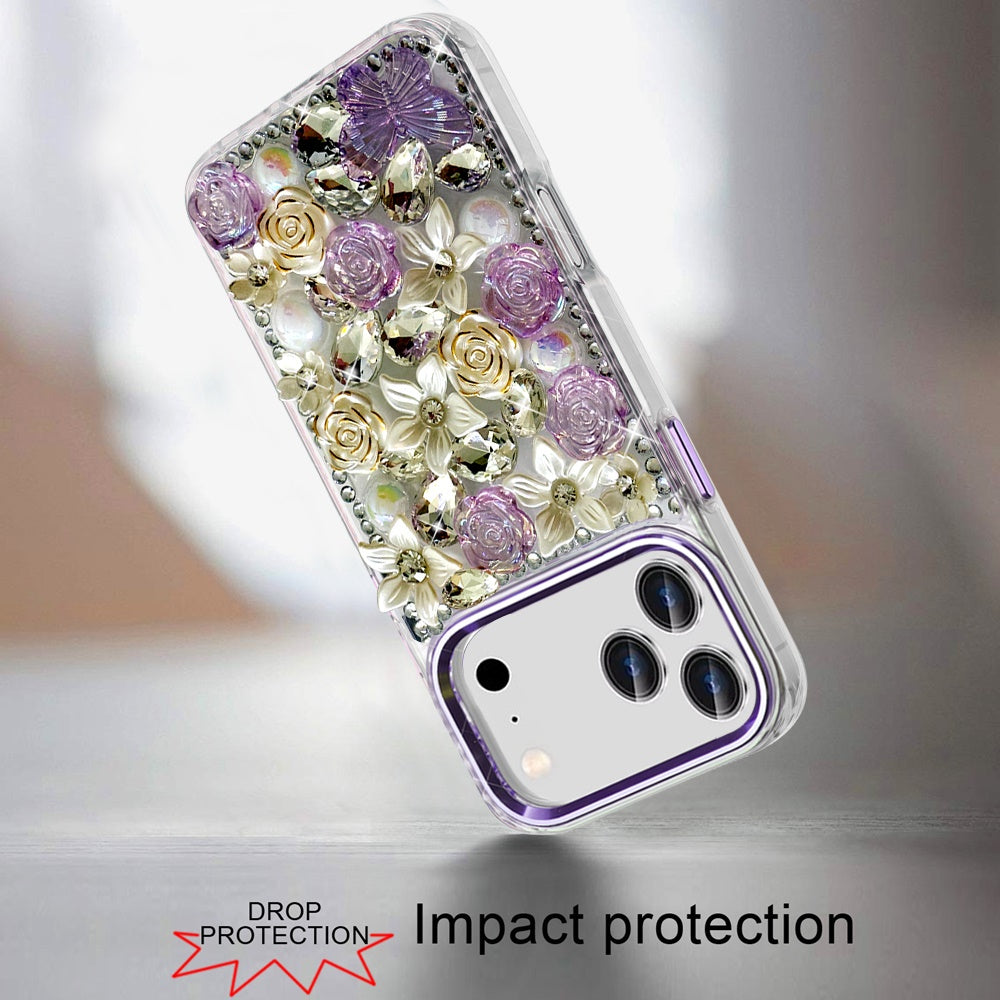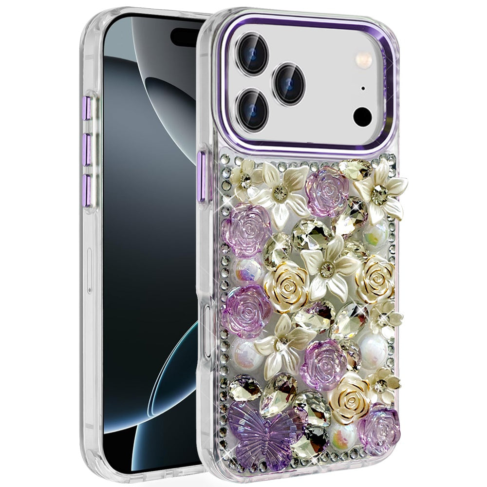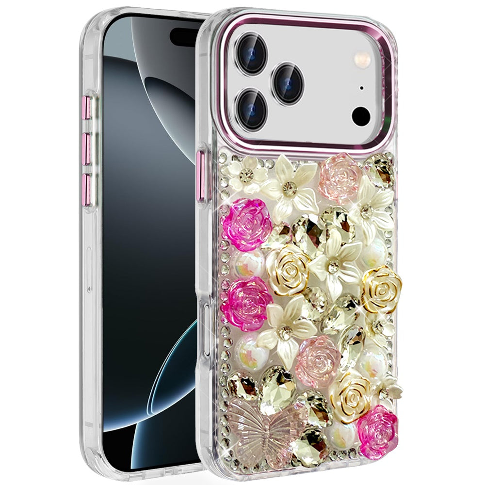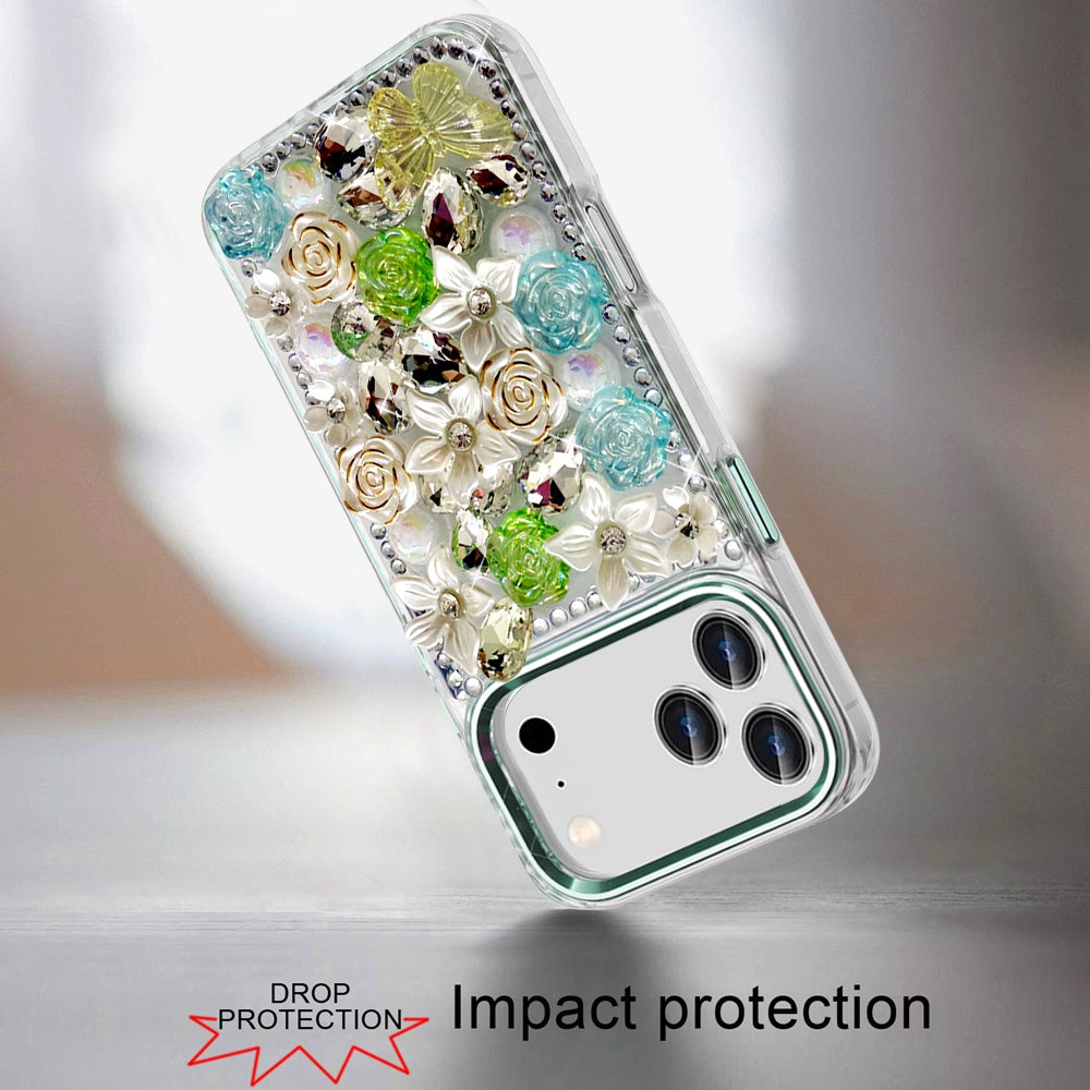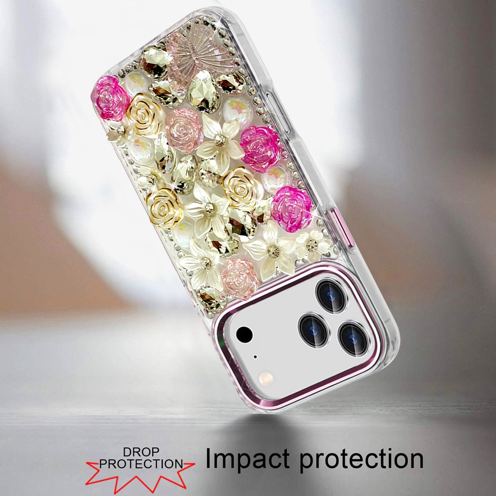 3D Full Floral Arrangement Shimmering Bling Phone Cover + Tempered Glass Screen Protector
