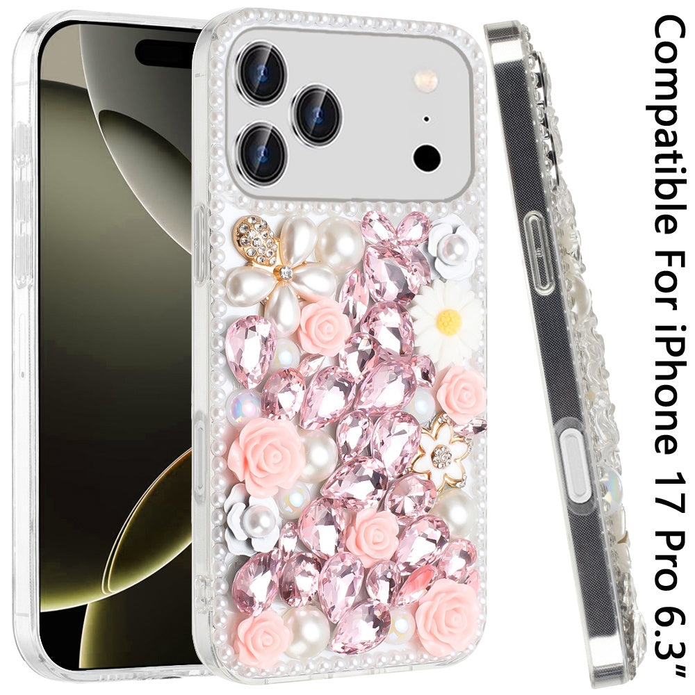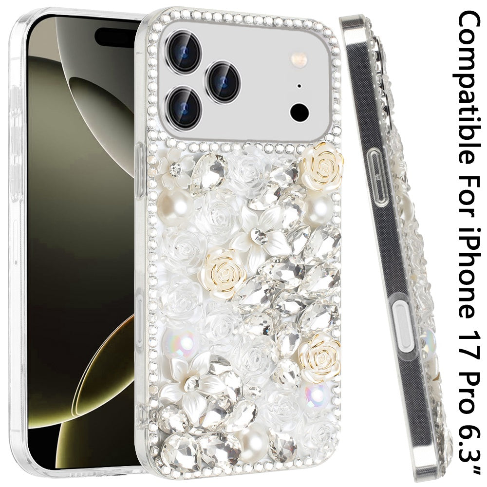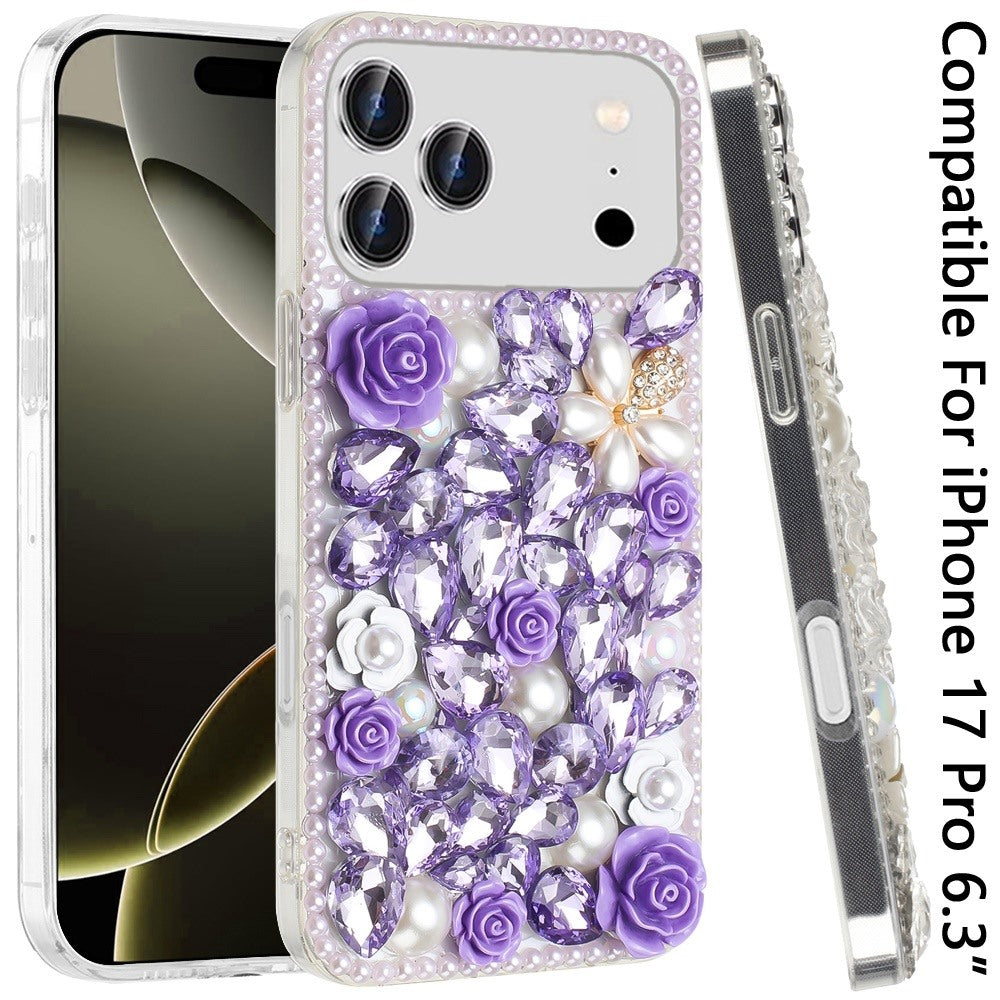 Full Rhinestone 3D Rose Bling Phone Case Cover + Tempered Glass Screen Protector