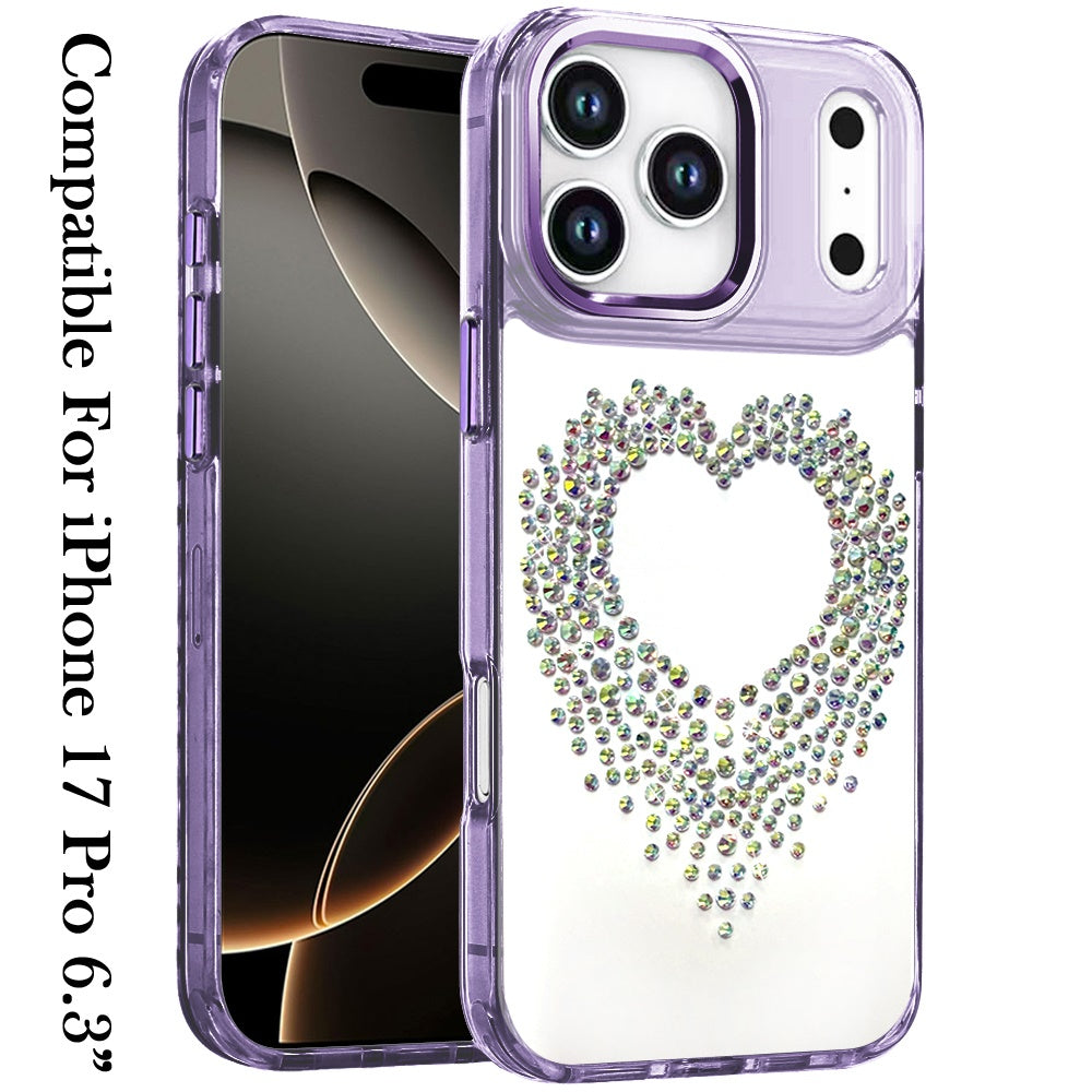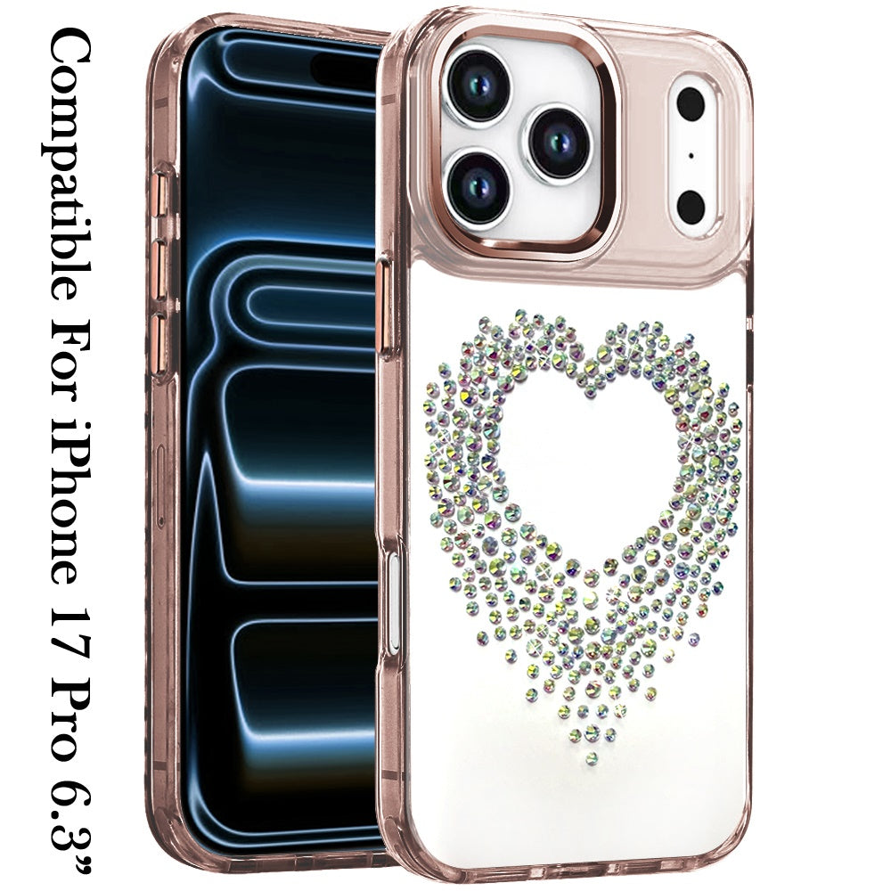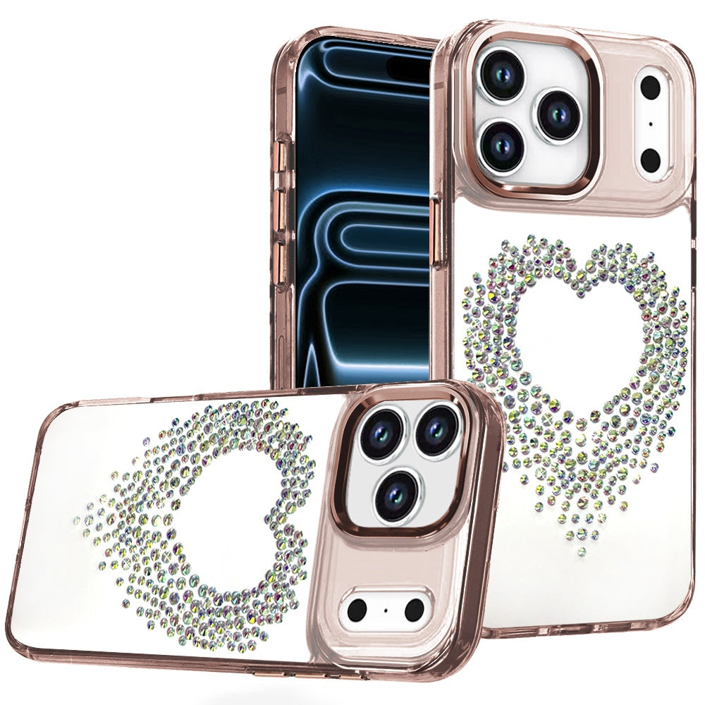 Heart Shaped Shiny Rhinestones on Clear Phone Cover + Tempered Glass Screen Protector
