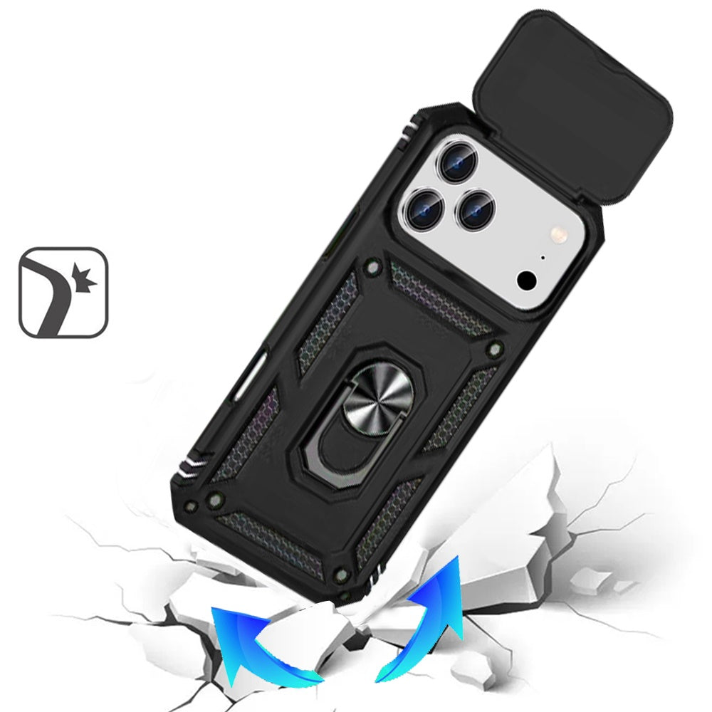 For iPhone 17 PRO Case Shockproof Ring Stand with Lens Cover + Tempered Glass