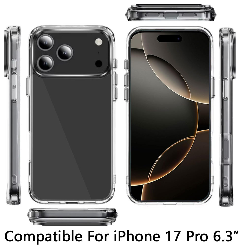 For iPhone 17 PRO Case Thick Crystal Clear Chromed Buttons + Tempered Glass