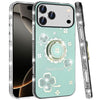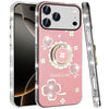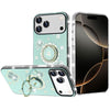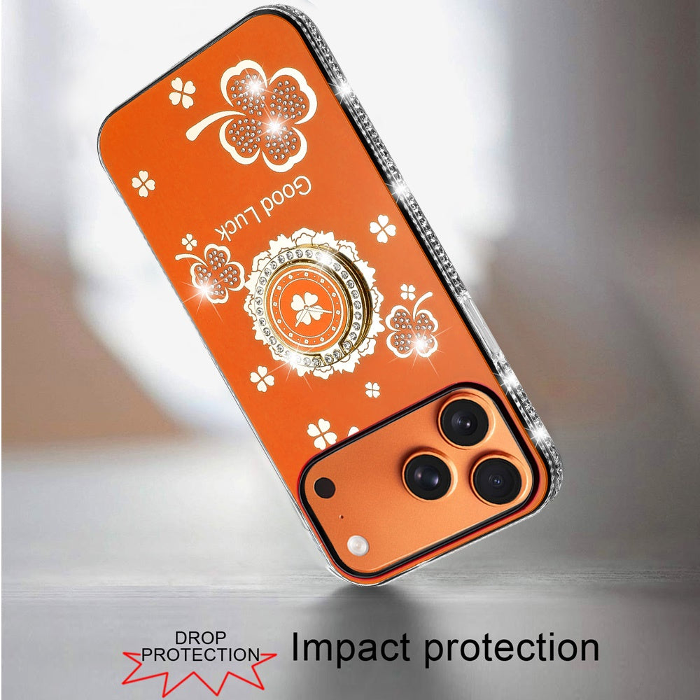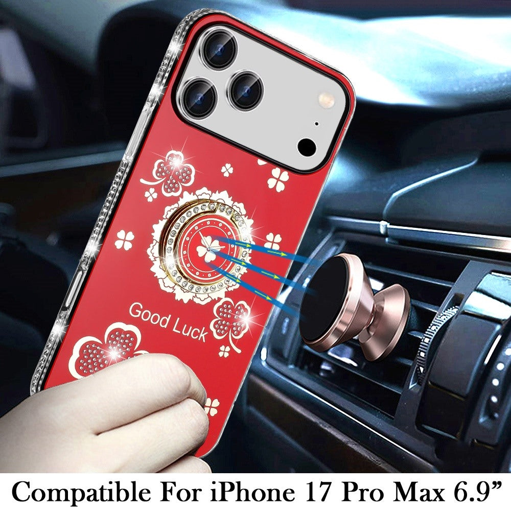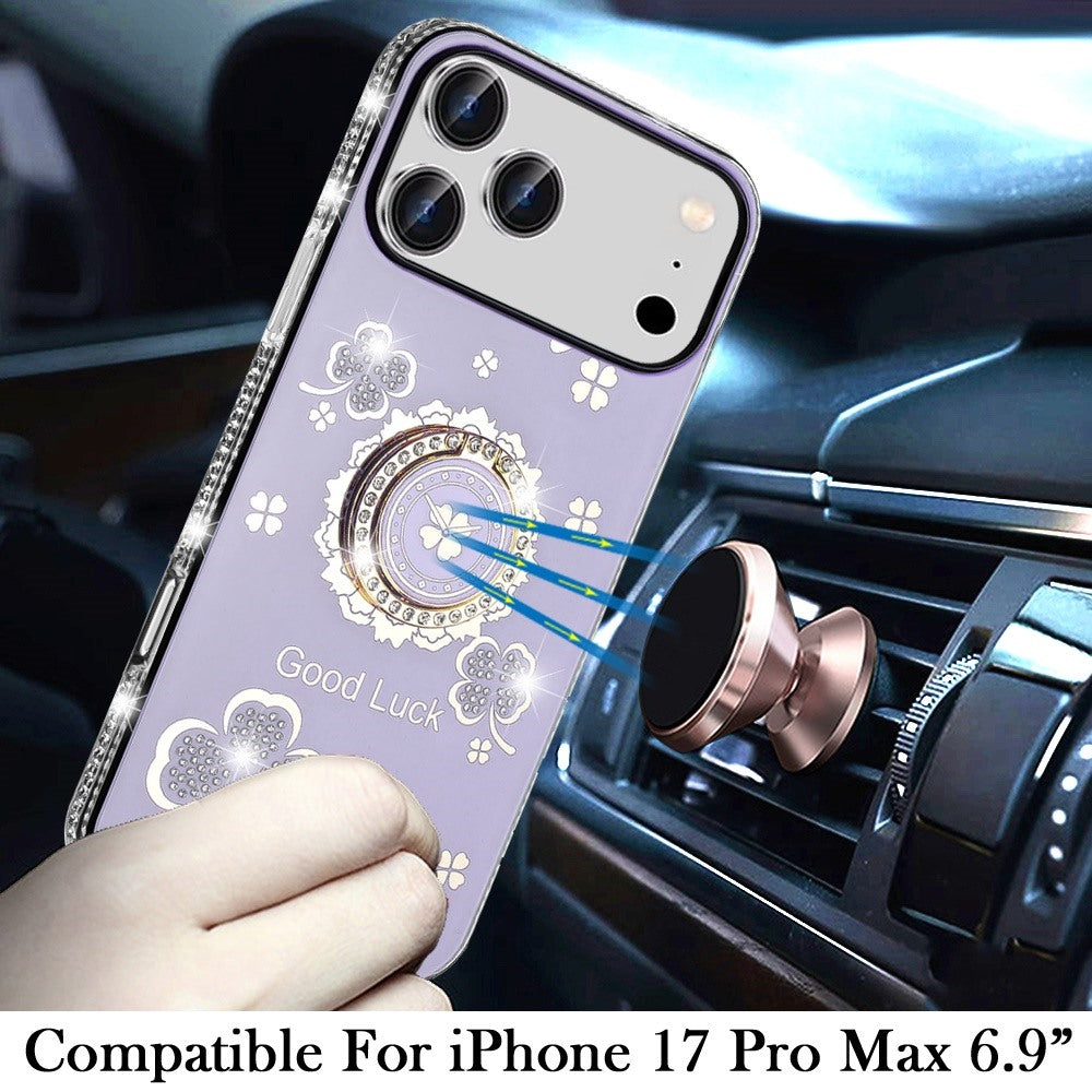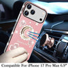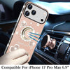 For iPhone 17 Pro Max Case Crystal Studded Ring Stand Bling + Tempered Glass
