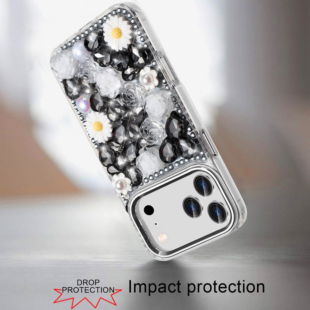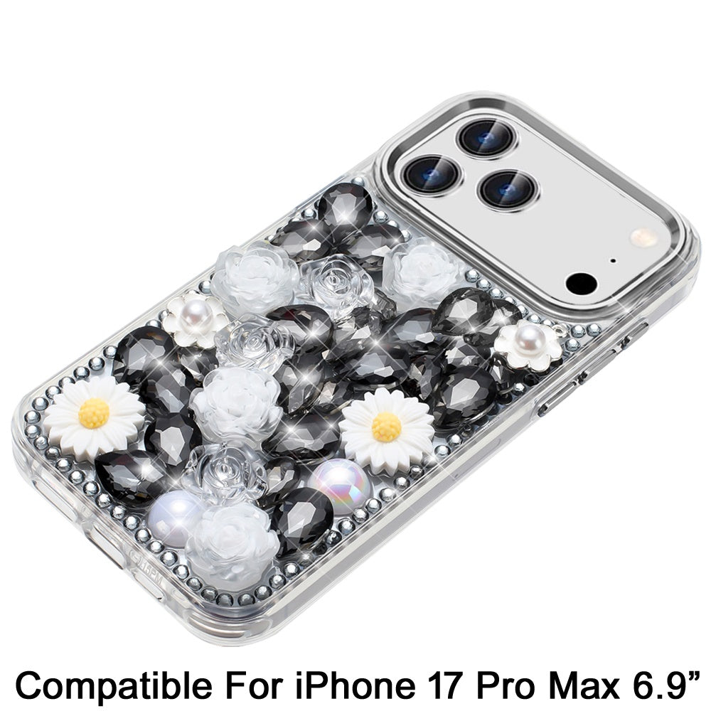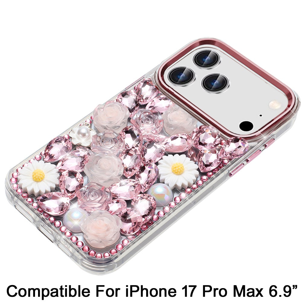 For iPhone 17 Pro Max Case Full 3D Bling Rhinestone Jewel Cover + Tempered Glass