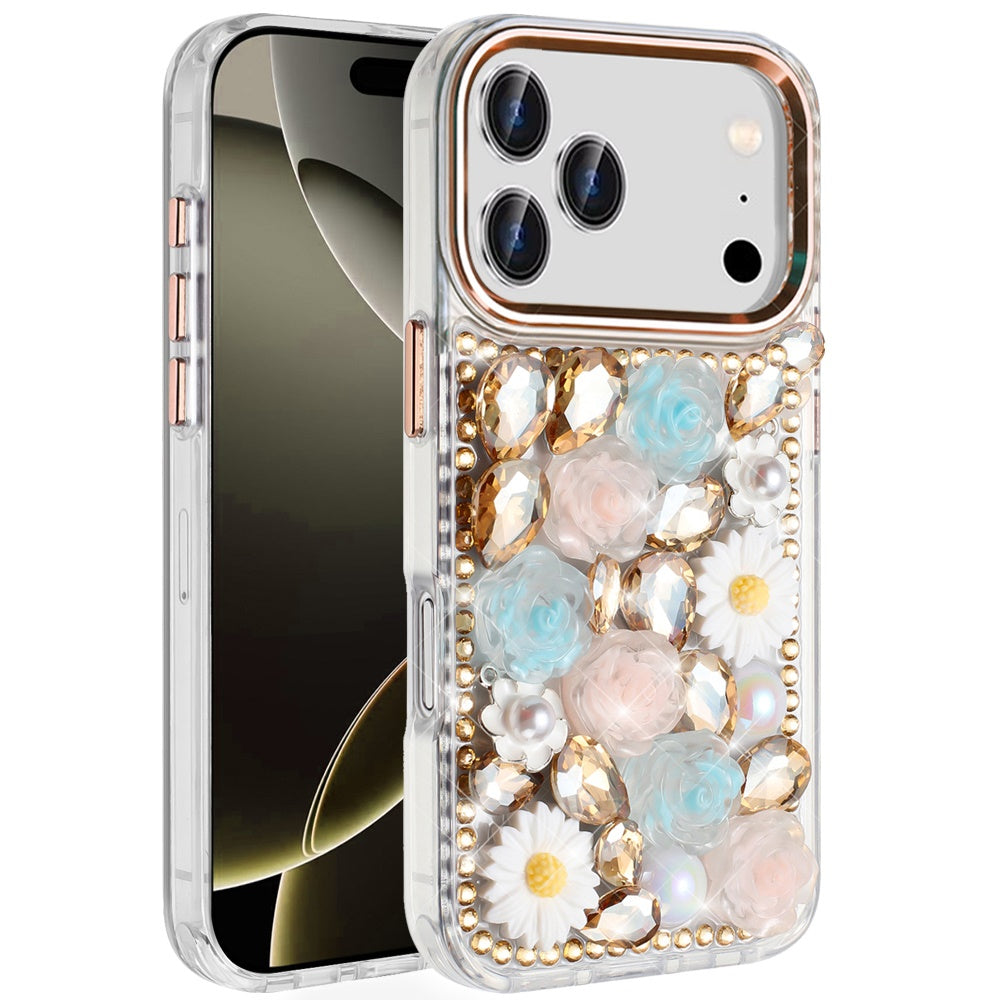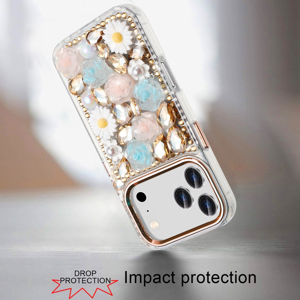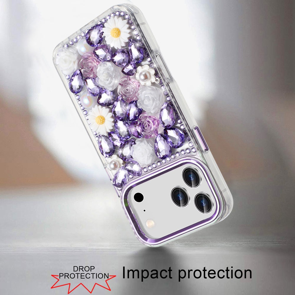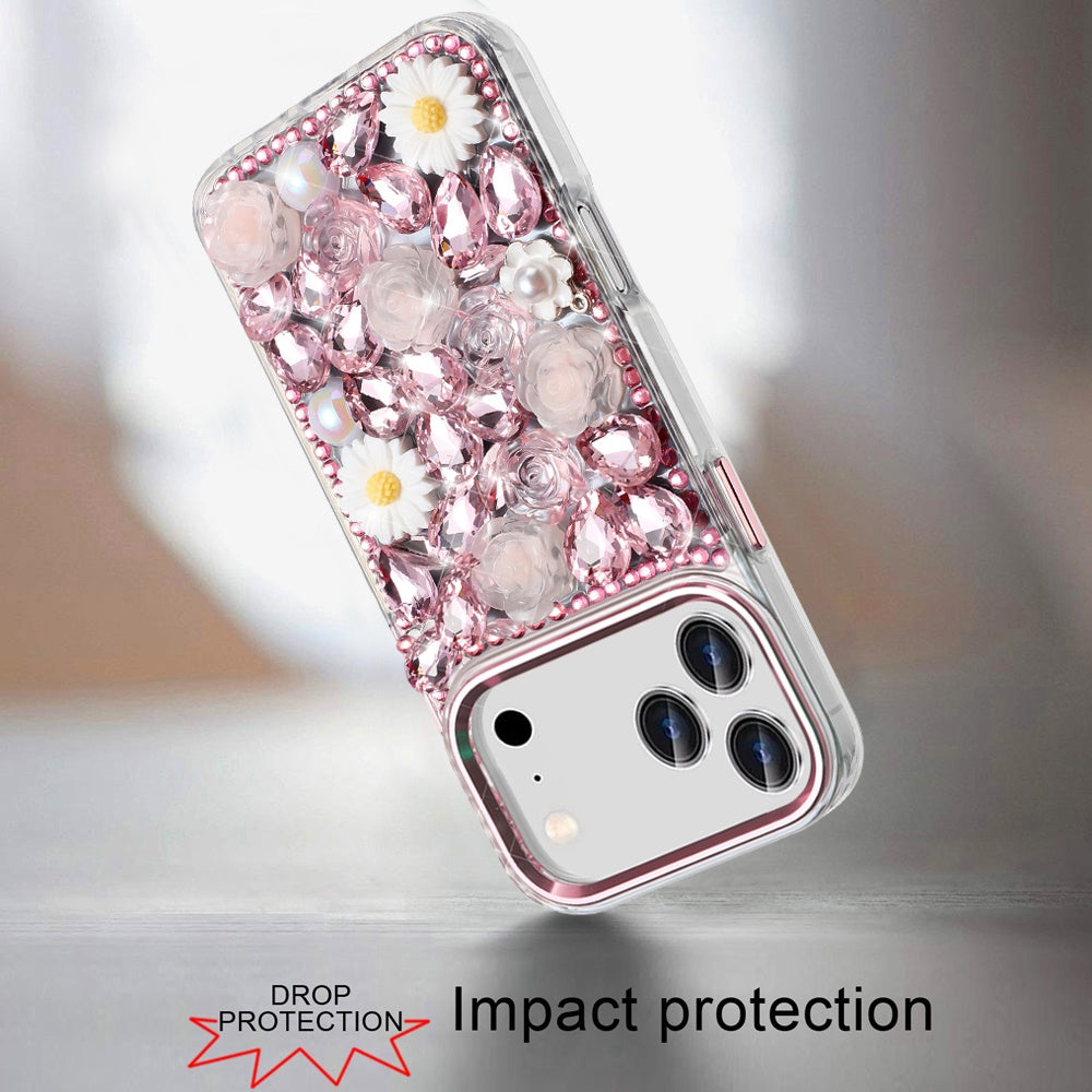 For iPhone 17 Pro Max Case Full 3D Bling Rhinestone Jewel Cover + Tempered Glass