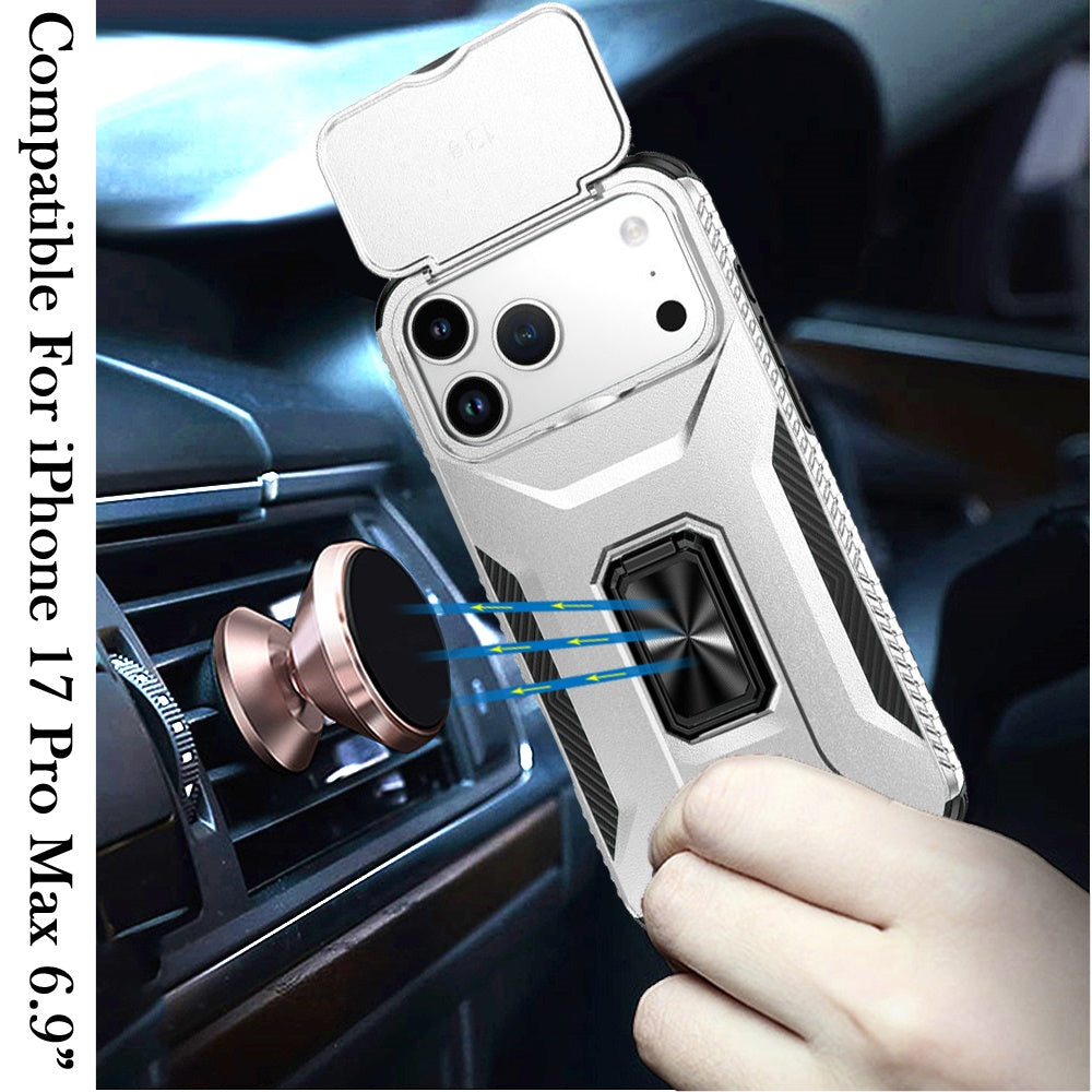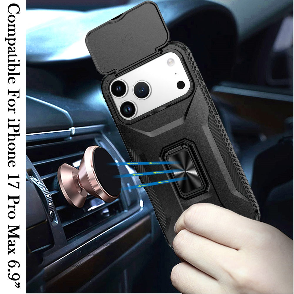 For iPhone 17 Pro Max Case Full Coverage Metal Stand Lens Cover + Tempered Glass