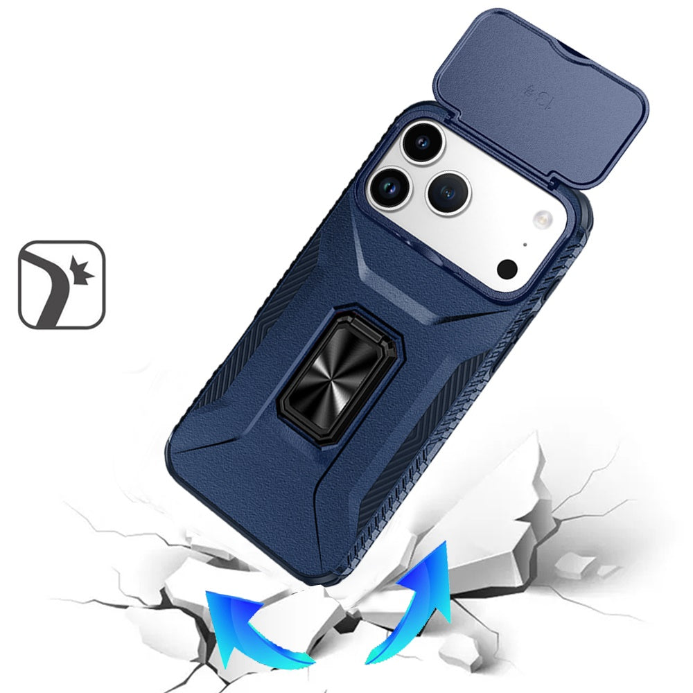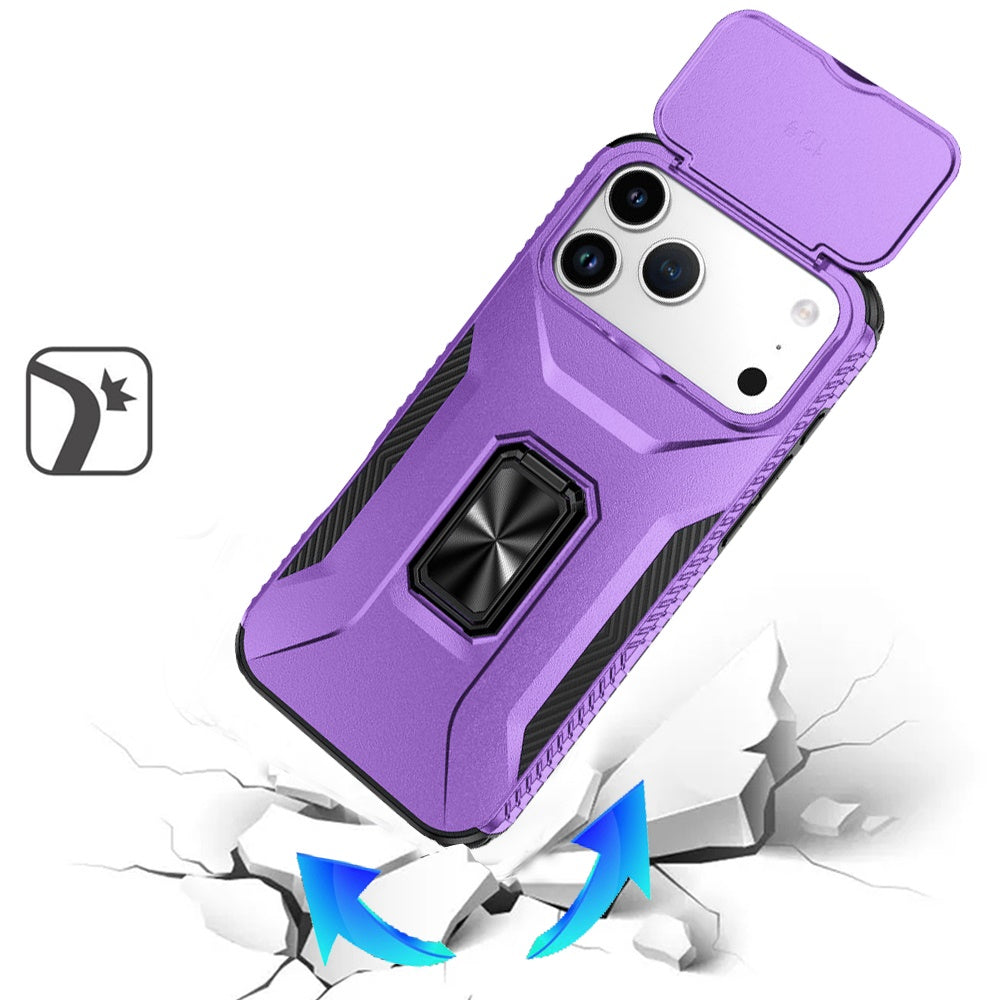 Complete Protection Sliding Lens Cover Shockproof Case Magnetic Metal Stand + Tempered Glass Screen Protector