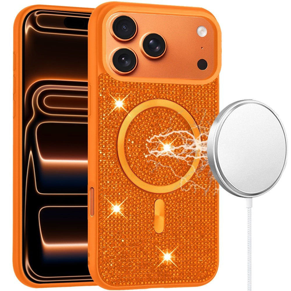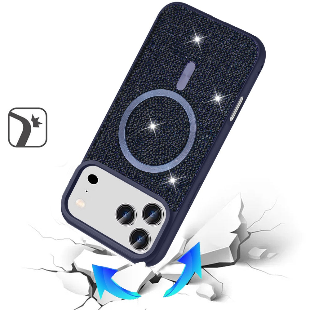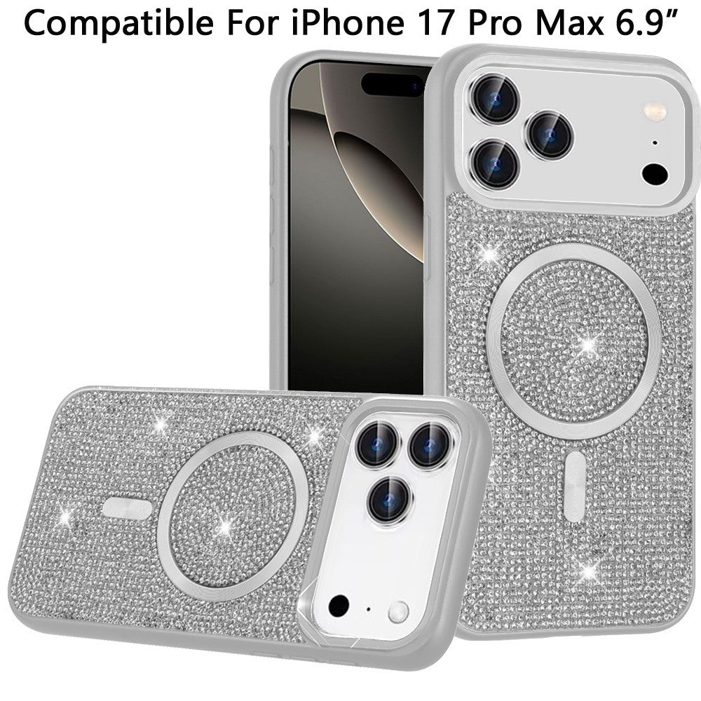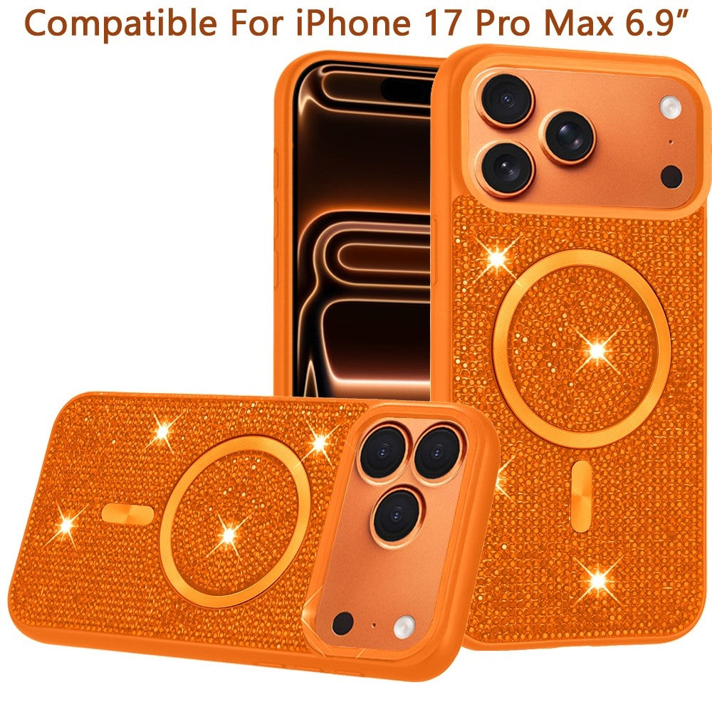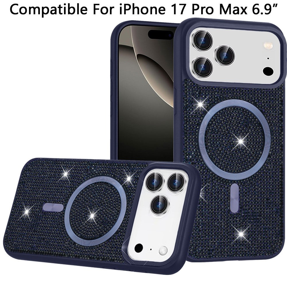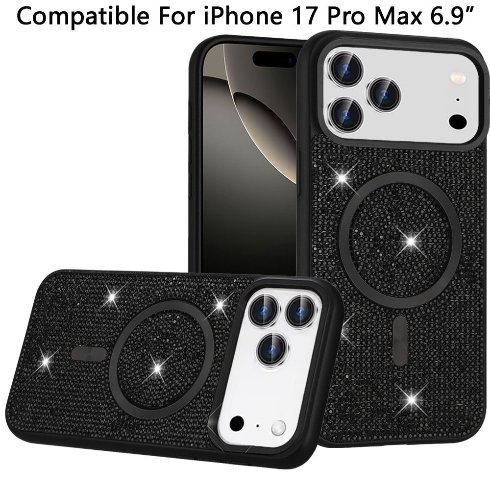 For iPhone 17 Pro Max Case Magnetic Circle Full Bling Dazzle + Tempered Glass